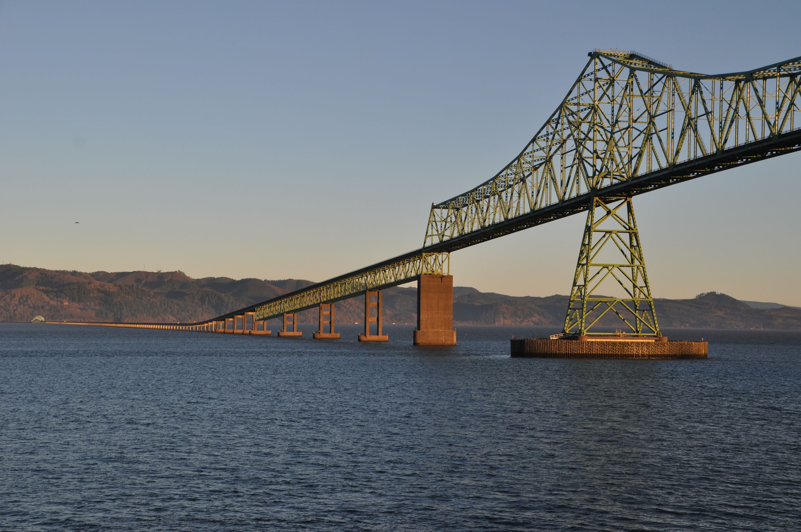 The Astoria-Megler Bridge from the balcony of my room in the morning sunshine.