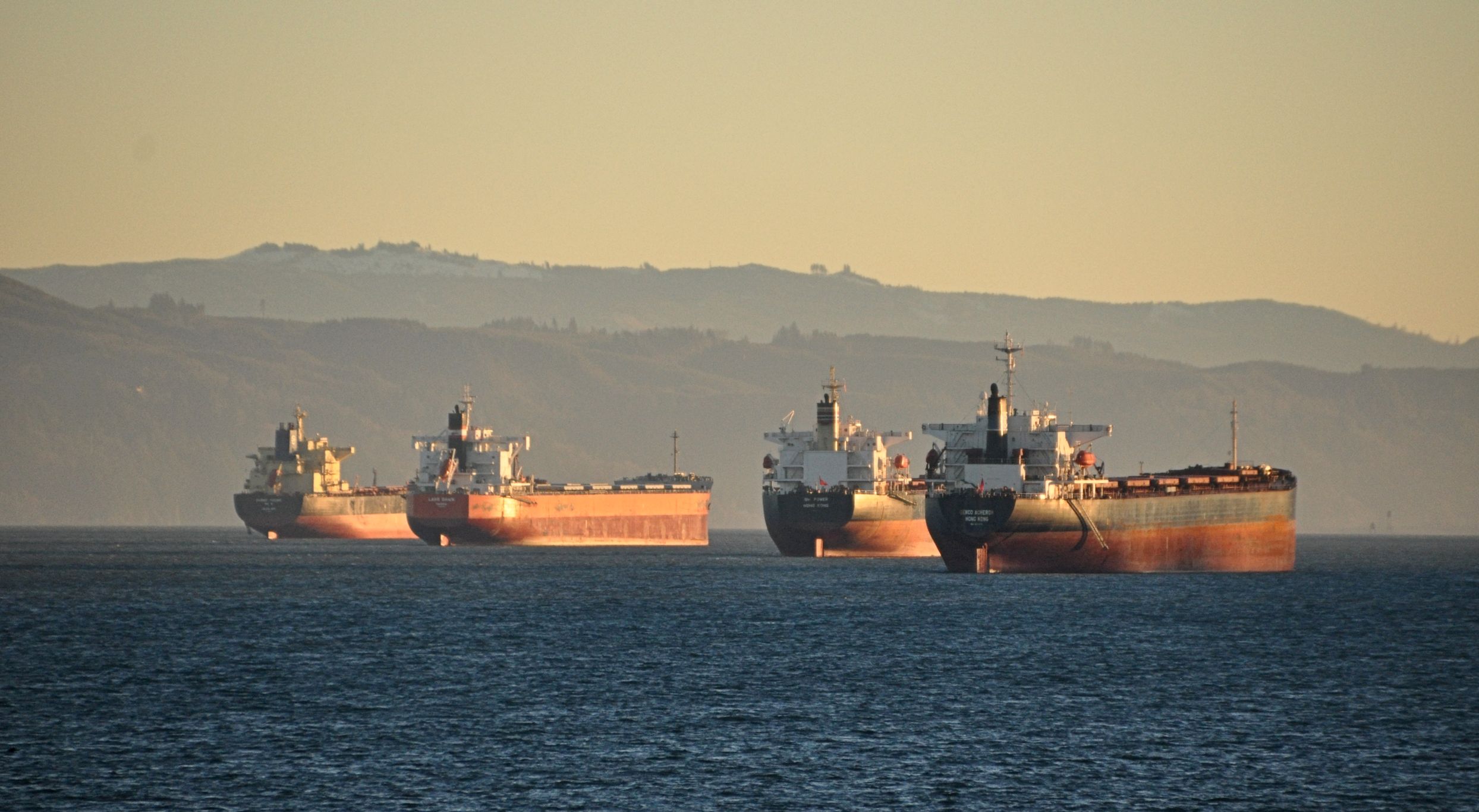 On the land side of the pier, I spotted big ships glowing in the sun.