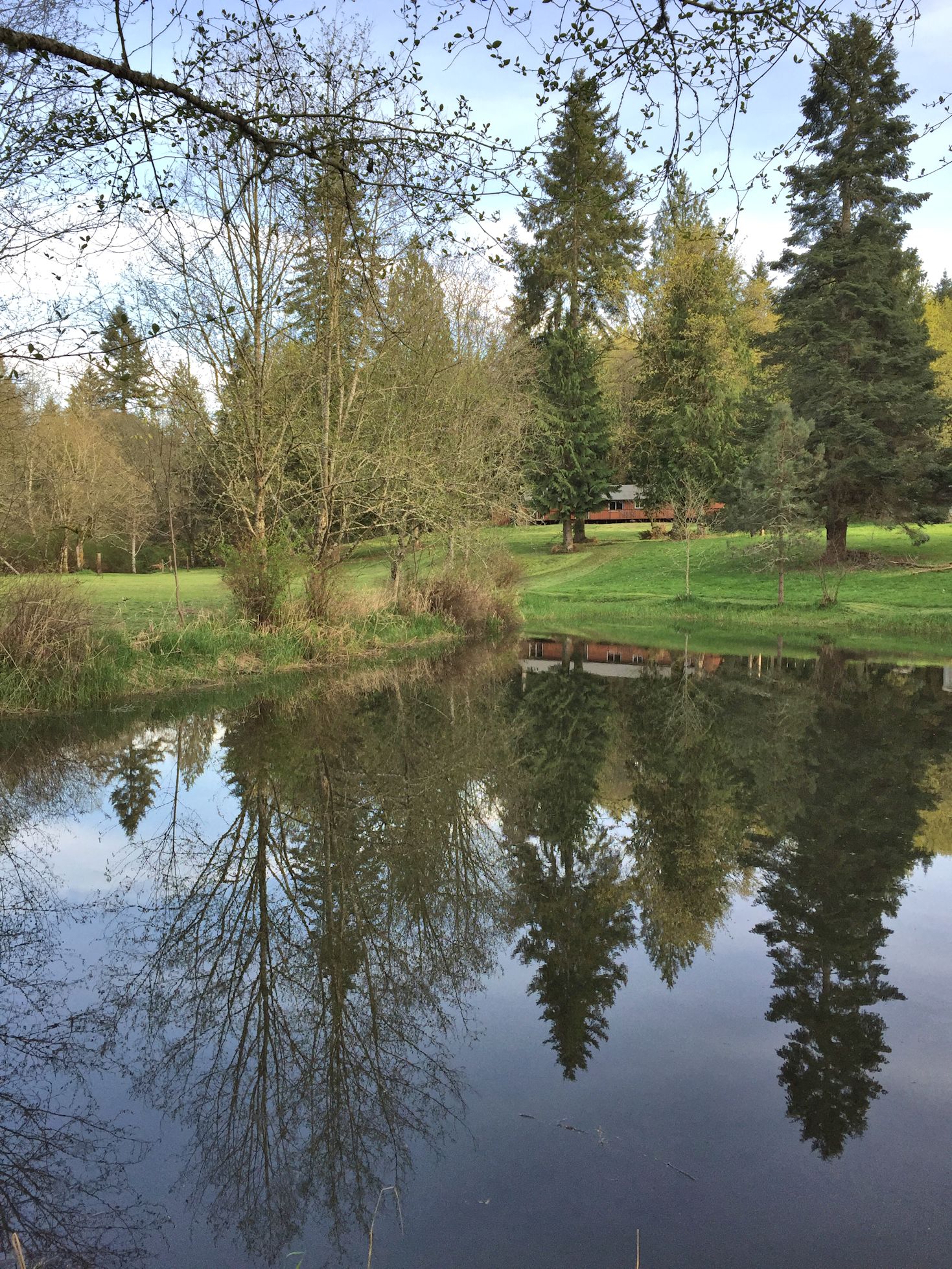 Looking across the pond up to the house, while taking a break from mowing the back forty.