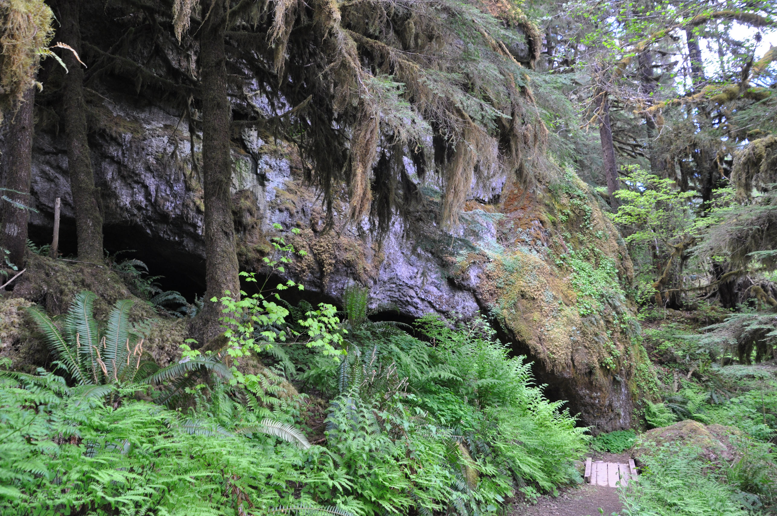 Look carefully and you can see the long horizontal mouth of House Rock above the ferns.
