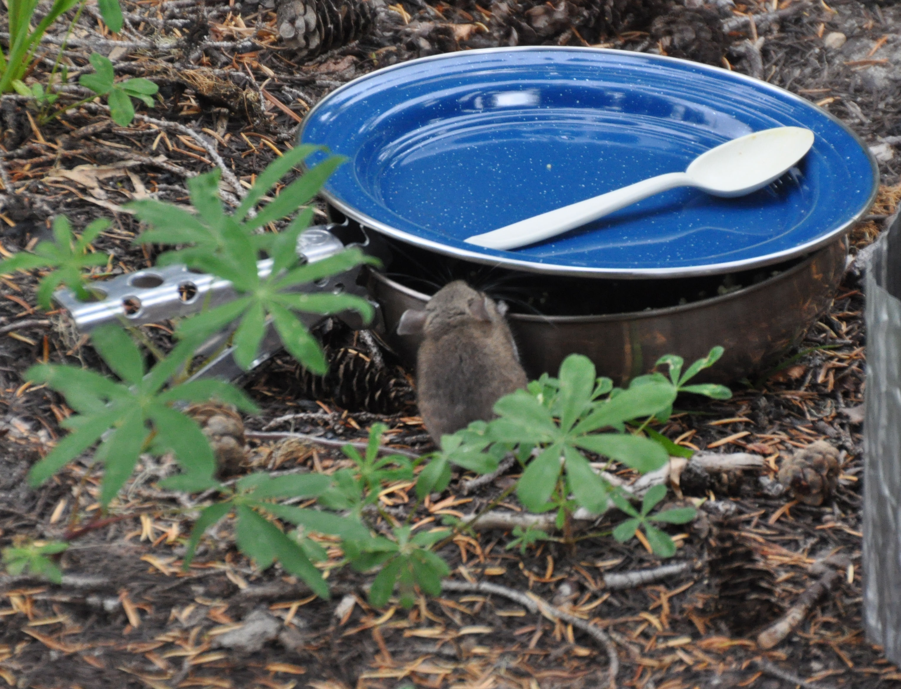 As is my tradition, I brought the fixins for delicious meals and was so delighted to have a climbing partner to share the weight. It’s amazing how much of a difference that makes! It was so light, my pack barely caught my attention. The first night we had Salmon Curry Couscous, a new meal I tried out that turned out great and was a snap to put together. We set down our dishes and within minutes a mouse arrived to investigate. The mouse left right away: not a fan of curry, I suppose.