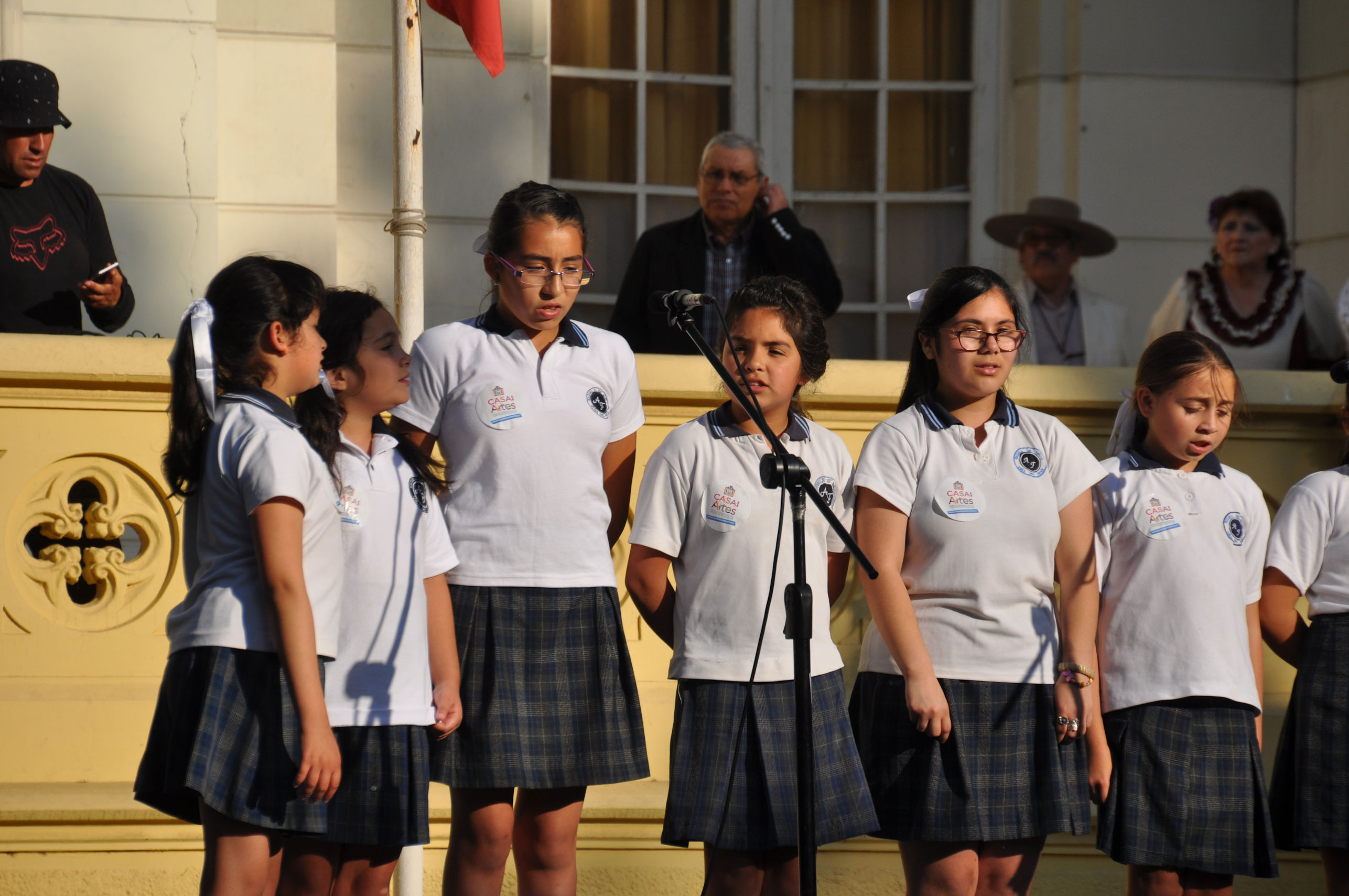 We have been admiring so much of Chile’s architecture. The lovely folks at Castle Wulff had provided us a walking map of some of the more remarkable homes in the city, so after we ate we headed for the bus station via these homes. We spotted a couple, but even more fun was that in front of one such gorgeous mansions was an event of some kind. At Palacio Carrasco we stood with the crowd and watched schoolkids take the stage and sing songs – one song for each school – and watched the parents and grandparents cheering and smiling and holding up their phones to get videos.