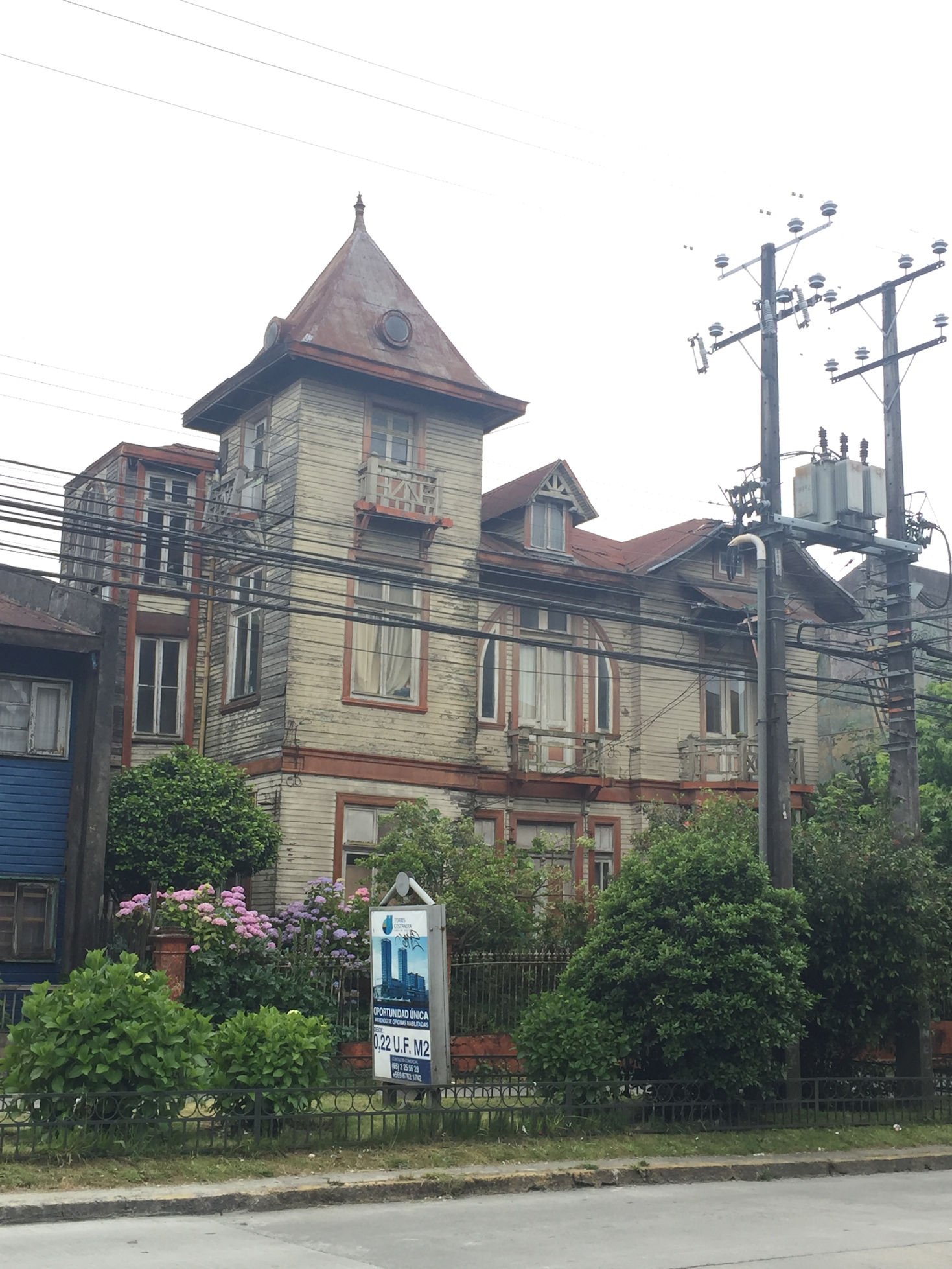 The municipal bus station in Puerto Montt is in the city, and not in some remote warehouse industrial area, like the tourist office. It’s right on the shores of a bay in the Pacific Ocean, so my hopes were high for a lovely diversion until it was time to go back to the airport. Instead, the skies were grey, and it was cold and windy. So cold my fingers were frozen. I walked up and down the streets briskly – partly to try and get warm, partly to look for something interesting – and found very little that captured my attention compared to the wonderful places I have been in Chile. I had to keep my head bowed to avoid the blasts of wind, even along the backstreets away from the waterfront. I did take photos on my phone (the broken camera was packed in my luggage), and those are what you see in this post. Tip for travelers: spend as little time as possible in Puerto Montt.