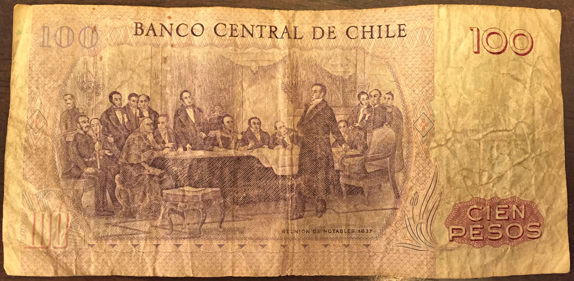 In the chill, it’s obvious my thoughts keep going back to those warm days such a short time ago. I’m still peeling from the sunburn, but the mosquito bites are all healed. Yay! I’ve got the stamps on my passport to prove it really happened. I was gathering some of the money together to send to my brother, who collects foreign currency as I do, and it occurred to me that my Uncle Sean was a missionary for the Mormon church in the 1980s and did his mission in Chile. He sent me a 100 CP note back then and I still have it. The currency has de-valued, and Chile doesn’t even *make* 100 peso bills anymore.