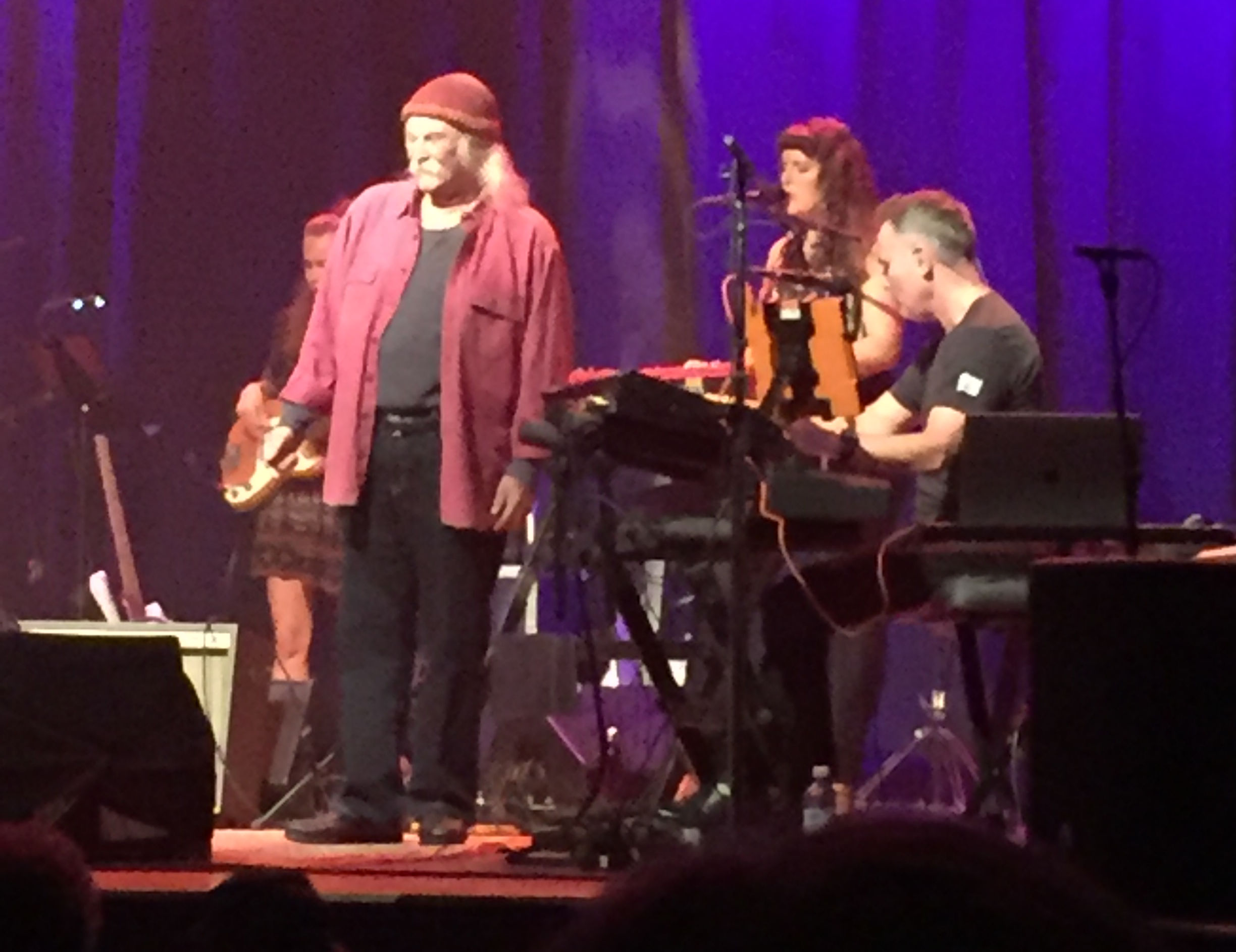 I was not familiar with most of the musicians on stage, only James Raymond the keyboard player. Raymond is Crosby’s son, and an accomplished musician in his own right. Raymond was adopted, and did not know his father until he was an adult. What fun to find your dad, then find out you had music in common? I just love that story.