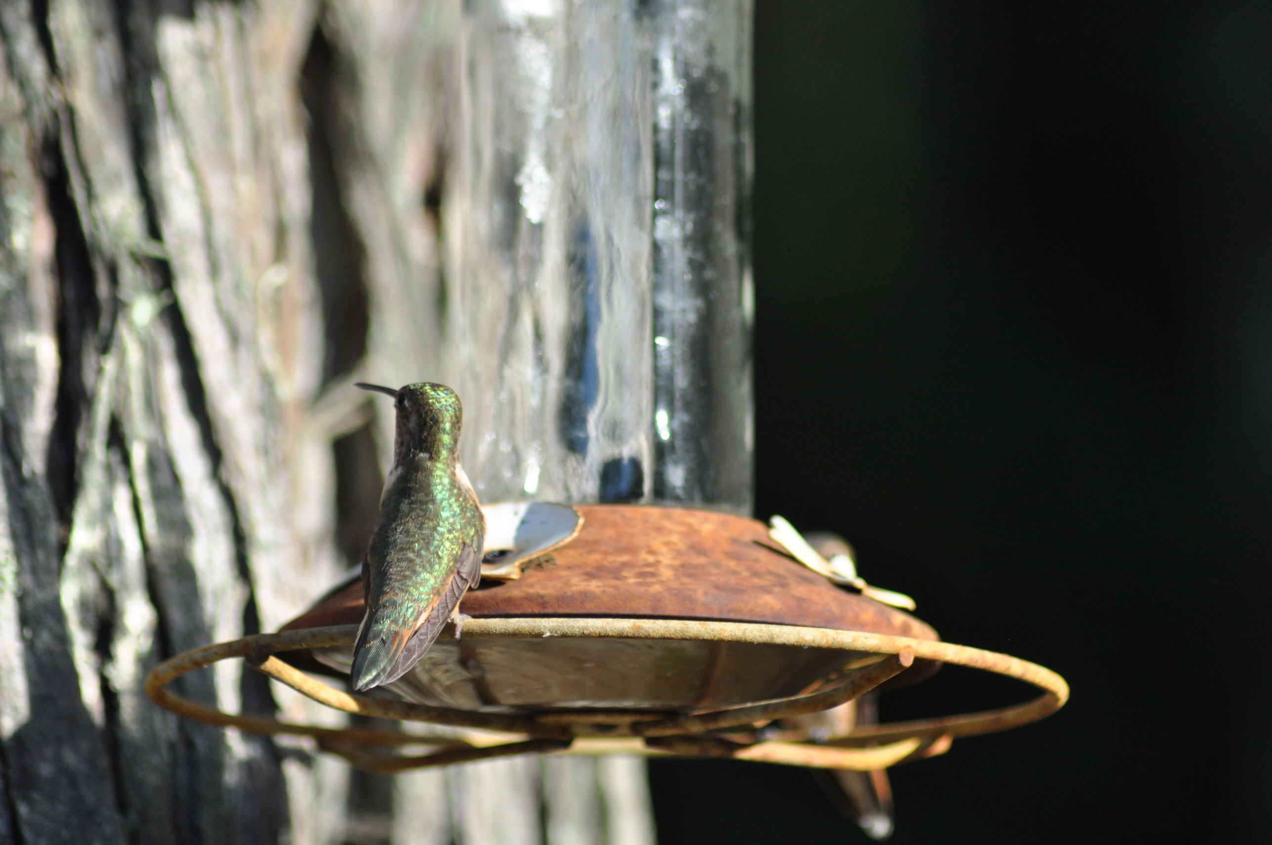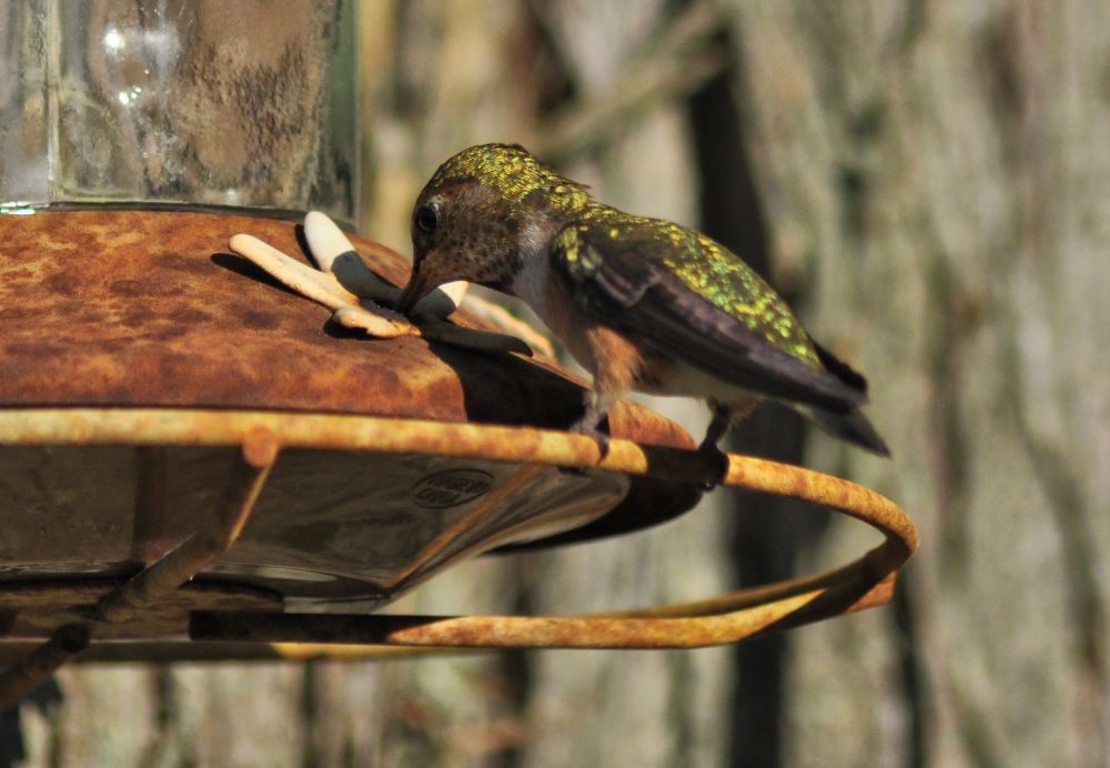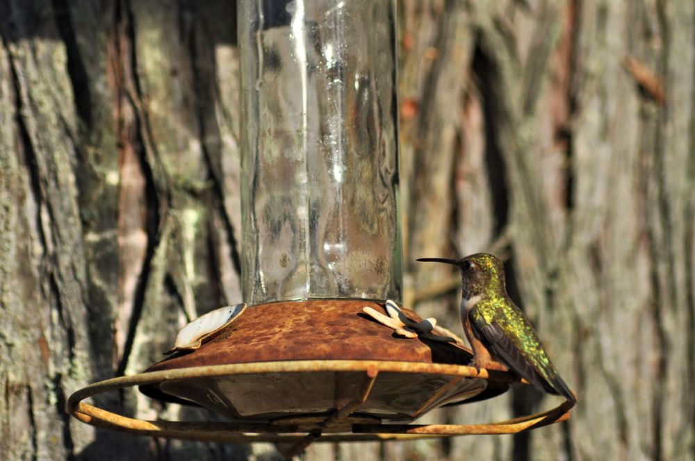 Hummingbirds have discovered my feeder. It’s clear they migrated in, because one day there were none, and the next day there were dozens.