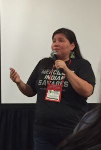 In this way, I’m also learning what a matriarchal society is. Of course, I studied it in my anthropology classes, so I know what it is. But book learning doesn’t lay out in real-world examples what it actually means to be a matriarchal culture. Traditionally Cherokee men moved in with their wives’ families, and the children and possessions and home belonged to  the wife. At any point, for any reason, the wife could divorce the man by placing his belongings outside the home. Women had a lot of power, but a lot of responsibility, and the weight of keeping the family together rested on the shoulders of the women. One man told a story about trying to build a re-integration program for Arizona Indians, and met with failure until his female secretary berated him for not involving the women, and following their direction. Several people talked about going to Standing Rock, and talked about how women were/are instrumental in that movement. I hadn’t even thought of it before, unconsciously mentally erasing women from power and action, when it turns out they were the source of power.