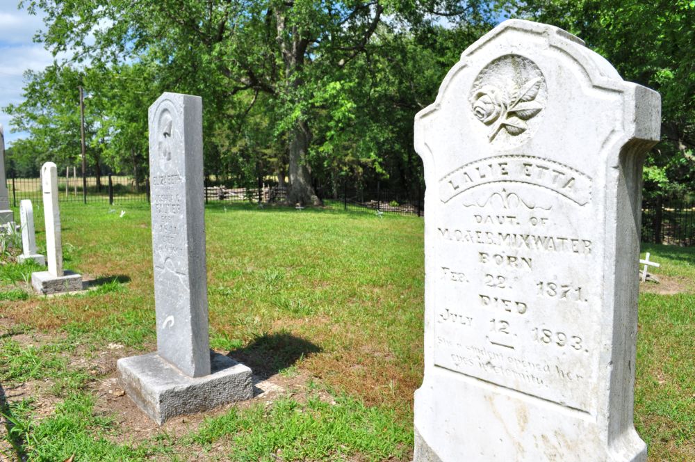 I wandered in a wide arc around the area, along the creek, through the trees, and found myself at a cemetery. From the dates, you can see that these people lived here during the time this place was used as a courthouse, and was actually the center of a community.