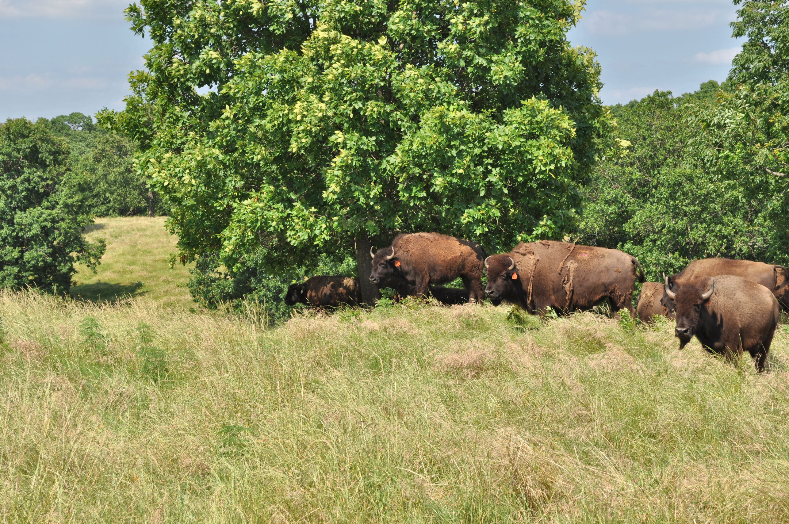 Finally, when we had all returned and were talking in the shade, the caretaker explained that our buffalo have segregated themselves into two smaller herds. “The TV buffalo – those are the ones you saw when you came in,” he said, “and the others are what I call the wild buffalo.” The TV buffalo? Turns out, the group we saw beside the road don’t mind people, and tend to hang out by the road. When Oklahoma television crews come out to do a story on the buffalo, those are the ones they shoot because it’s such an easy shot. The other buffalo don’t like people, don’t go near the road, and don’t even mix with the TV buffalo. “I wanted you to see the wild buffalo,” he explained. “That’s why I took you out so far to see them.” Ok. All is forgiven.