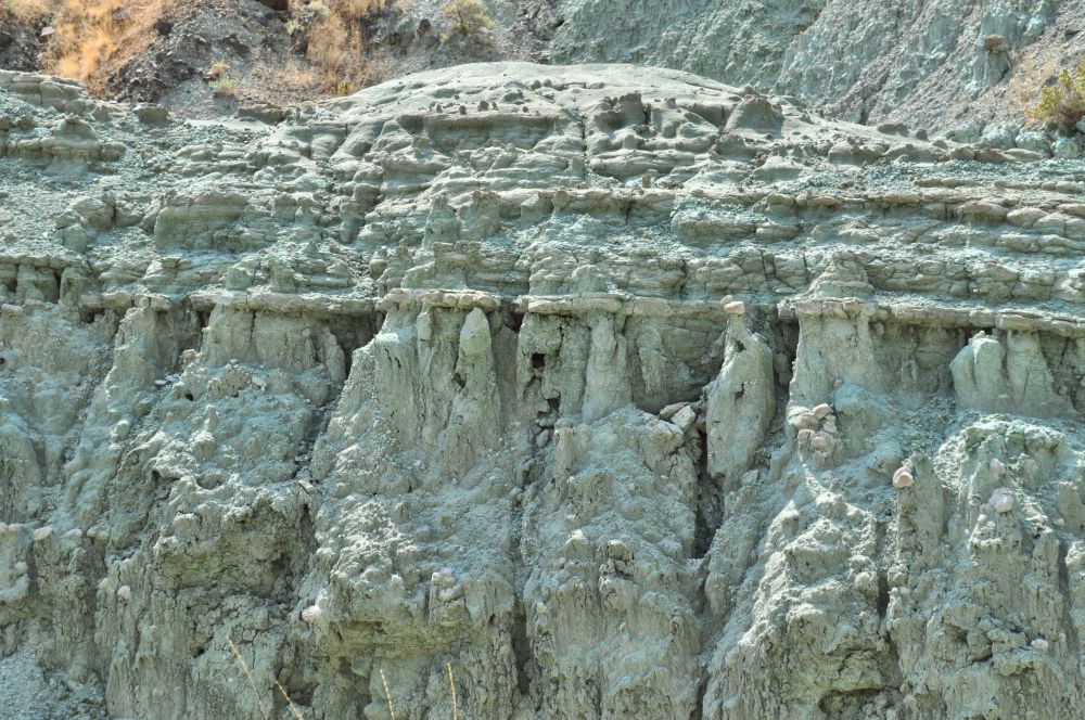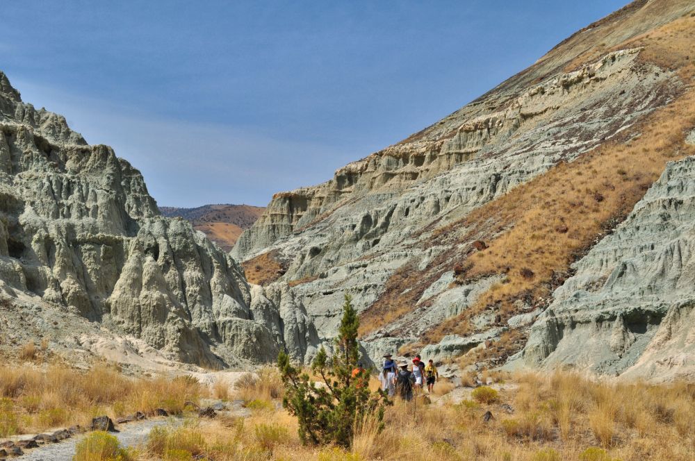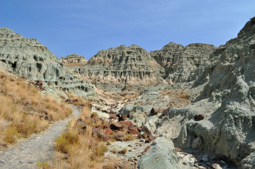The draw here is the blue-green clay and weathered formations that tower up from the trail. As we were near the John Day Fossil Beds National Monument, it was not surprising but still delightful to find fossils installed along the trail to help us imagine the canyon in a different time. The fossils were only replicas of what had been found there.