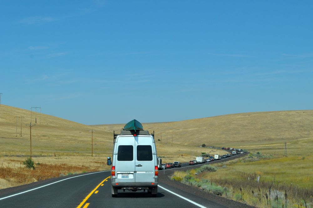 In an hour or so, I was crawling along the road at 8 miles per hour with hundreds of others who had delayed their return, just like me. My attempts at being uniquely clever were dismayed every time on this eclipse trip. I guess the odds of coming up with an original idea are reduced when there are thousands of others seeking eclipse totality with you! 😉