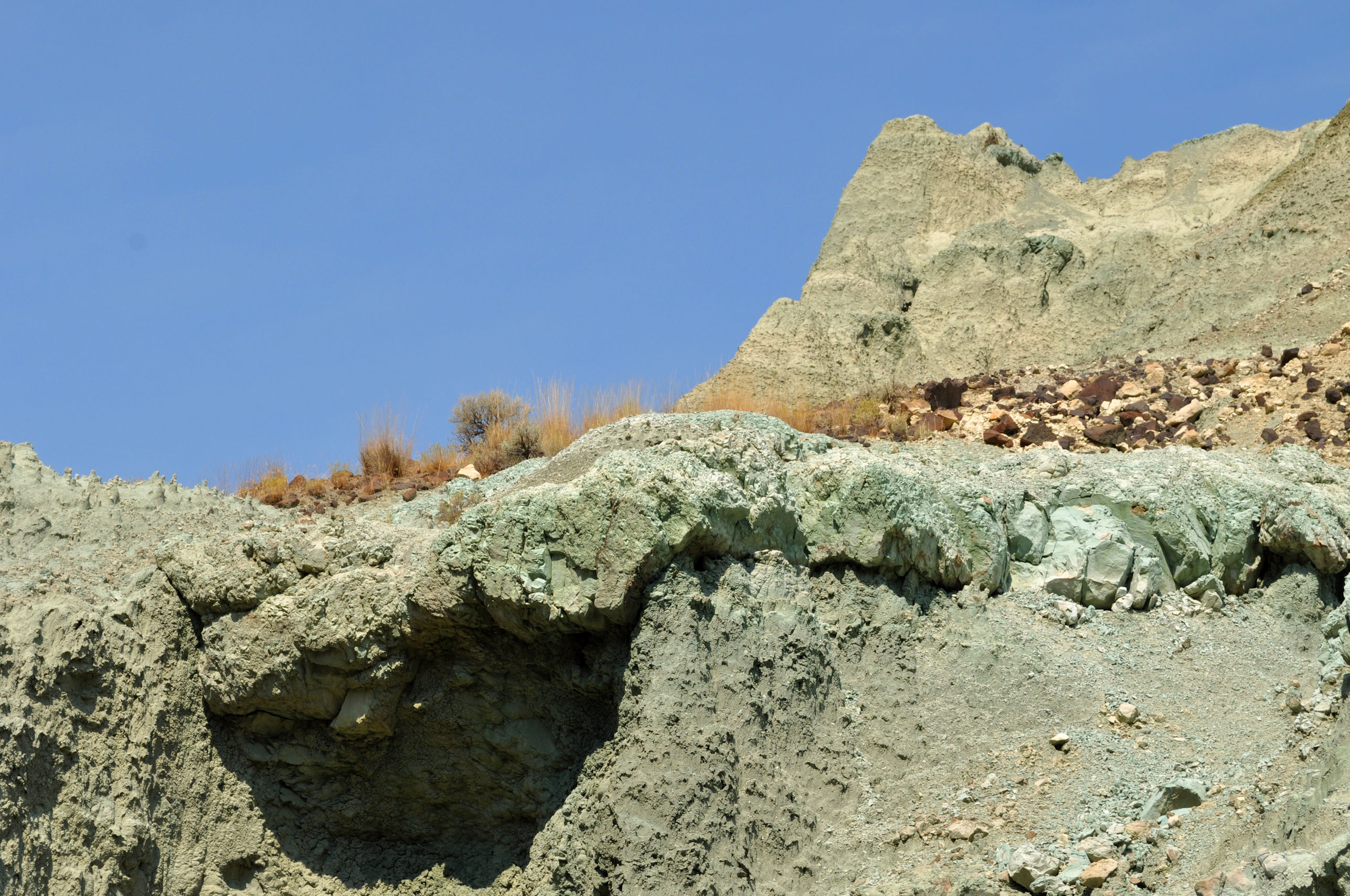 The blue and green colours showed everywhere, and were most noticeable when I could contrast them with more familiar colours like the golden grasses and rust of mineral-rich soils. I tried to find brighter blues in the few damp areas of the small springs there, but there were no clear examples. My guess is that this canyon is even more remarkable in the rain, which would likely bring out those unexpected hues.