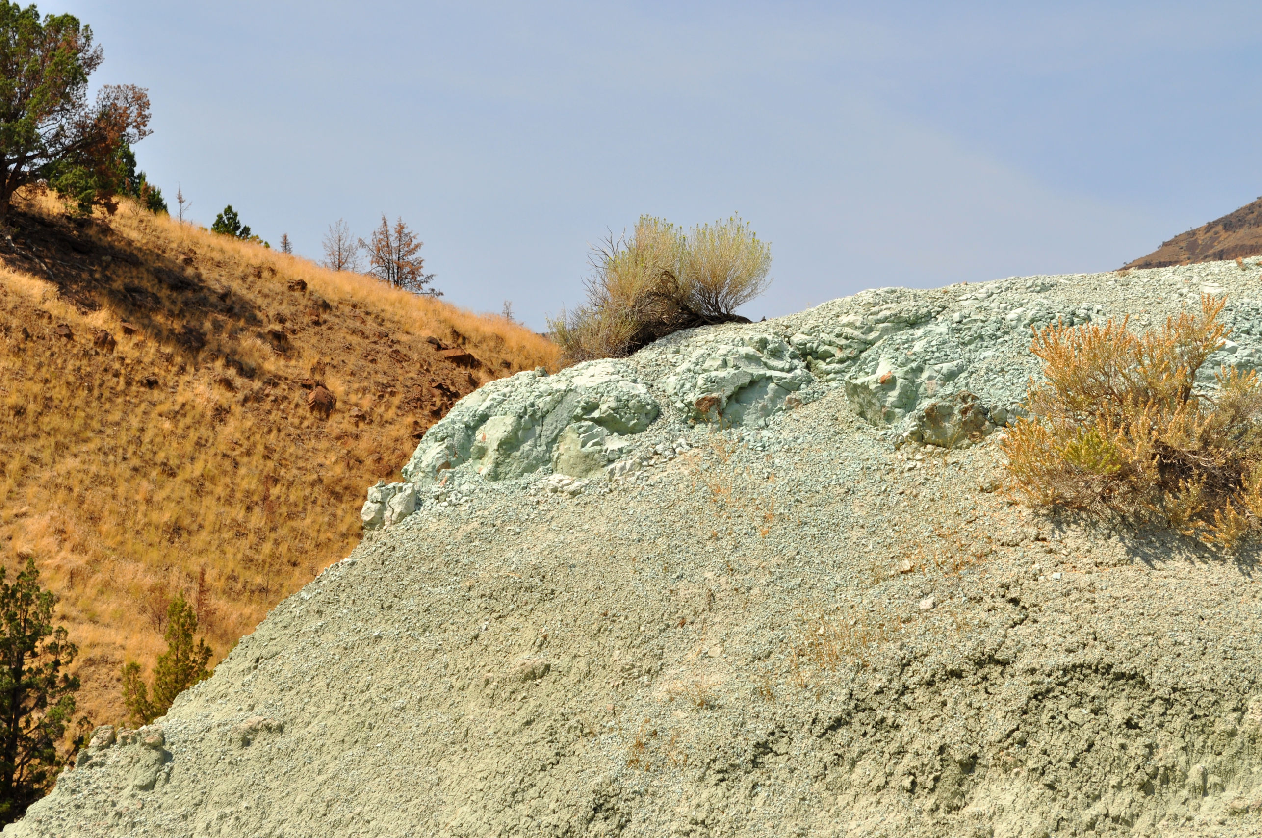 The draw here is the blue-green clay and weathered formations that tower up from the trail. As we were near the John Day Fossil Beds National Monument, it was not surprising but still delightful to find fossils installed along the trail to help us imagine the canyon in a different time. The fossils were only replicas of what had been found there.