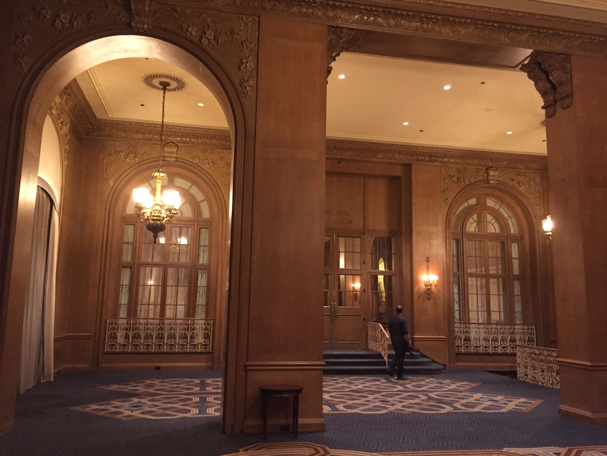 That night we ate heaps of oysters and Jim, the fabulous and friendly waiter, chatted with us every time he passed by. I gleefully told him I was celebrating my birthday with my brother, and of course, when we ordered dessert split three ways (we were stuffed to the gills), it came with a birthday candle and garnish. “On the house,” Jim insisted. We goofed around and took photos in the gorgeous empty spaces in the hotel after dinner.
