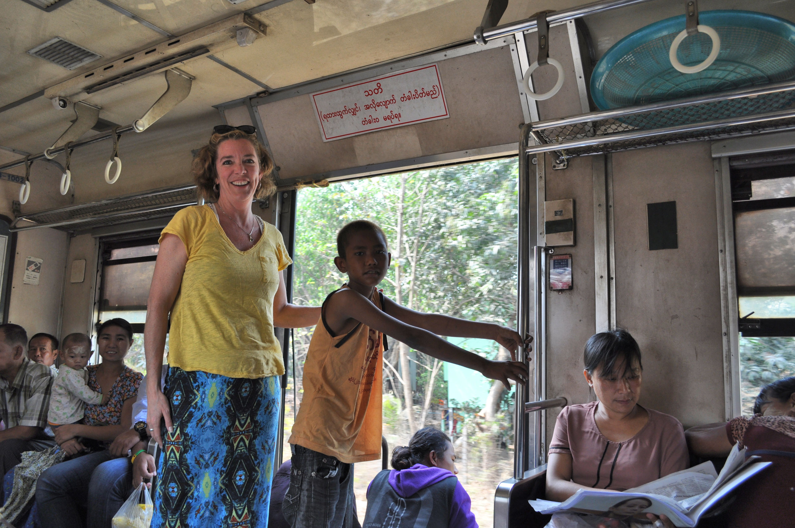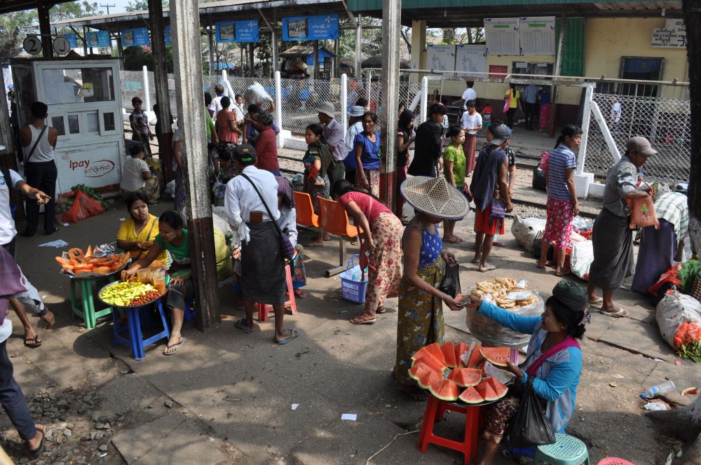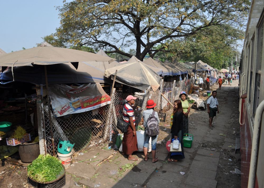 Ok, here’s one thing I’ve learned in Myanmar so far: the people nod and smile and say yes even when they have no idea what you’re talking about. So, the train slows down and the four of us get up, a little hesitantly. We asked a few more people “Circle train?” “Yes, yes,” we were assured. Someone spotted some Western-looking tourists getting off the train, and asked them. English was not their first language, but it seemed like they understood the question because they also smiled and nodded and said “yes!” So we came to the consensus that it was the correct train as the train was pulling away from the stop.