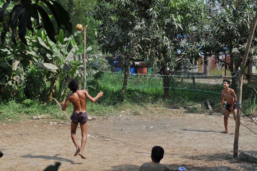 None of us wanted to go the full 3 hours on the train in any case, so this actually worked out perfectly. We had a 30 minute break from the train, so we wandered the industrial zone town. The towns people treated us very well. When I went to purchase a cucumber from a woman at one shop, she wouldn’t let me pay. At one spot we watched boys playing some kind of sport with a hard ball bounced off their bare feet and heads, played roughly like volleyball. Our walk was shady and pleasant, and we had a chance to chat about each others’ lives.