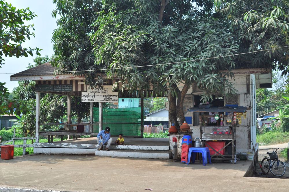 The next adventure was an hour later, when we realized the train had not curved around the circle, but continued due north. Not knowing what to do, we jumped off the train at a stop that turned out to be someplace called Industrial Zone, almost to Shwepyitha. It’s a tiny little community with dirt streets and simple homes and businesses. After talking with the person at the train station, S informed us that the train we left would go all the way to the end of the track, then come directly back, and it would be the next train to come through. We would just pick it up again and head back to Yangon!