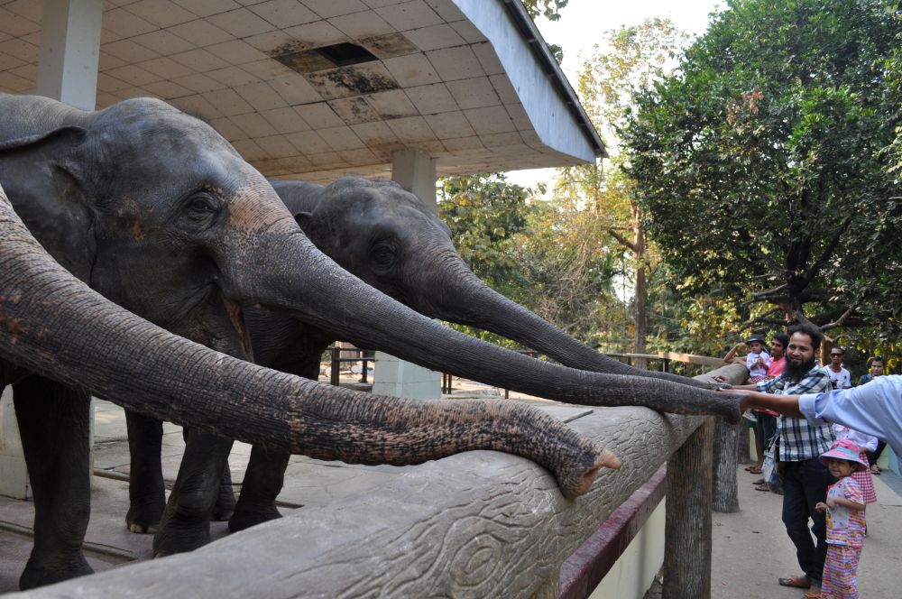 The main Yangon train station was close to the Shangri-La hotel, so we went back there and sat in the air conditioning and had lunch and some refreshing Myanmar beer. Then we walked to the zoo. Conscious that we may get pagoda’d out by the end of this trip, we have already been scanning the maps for things other than pagodas to see.