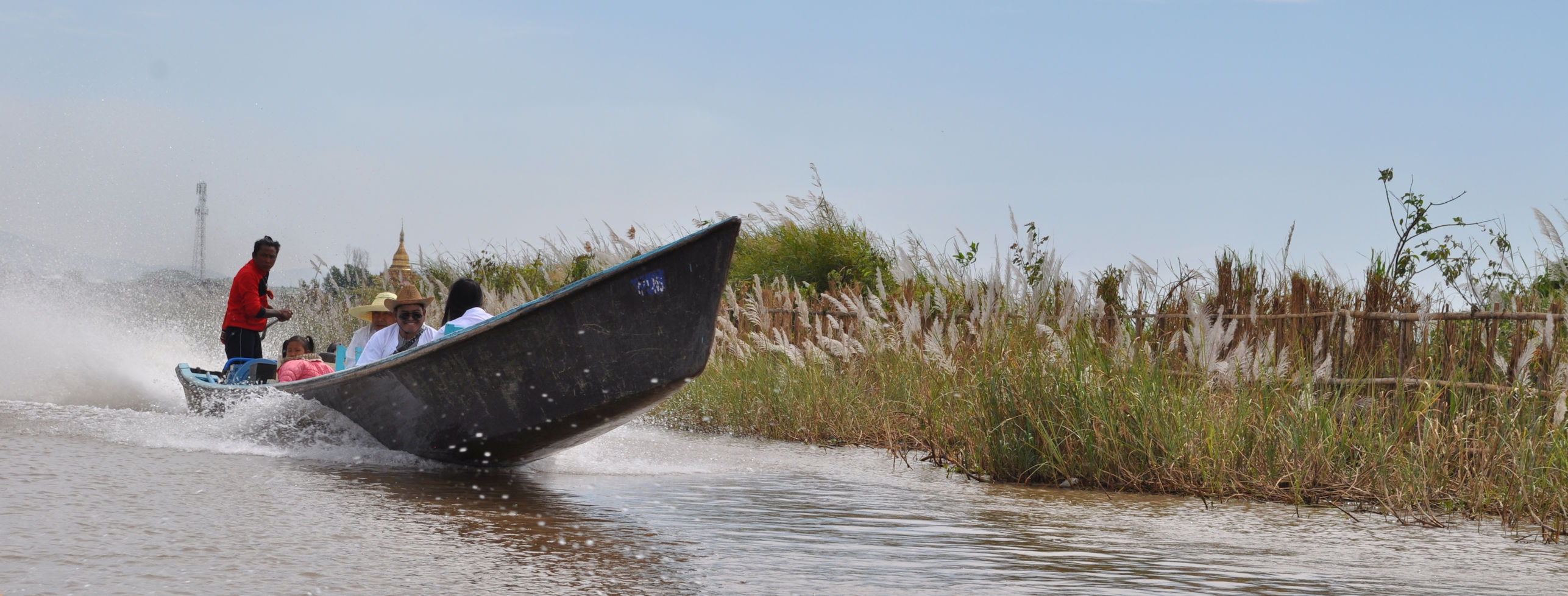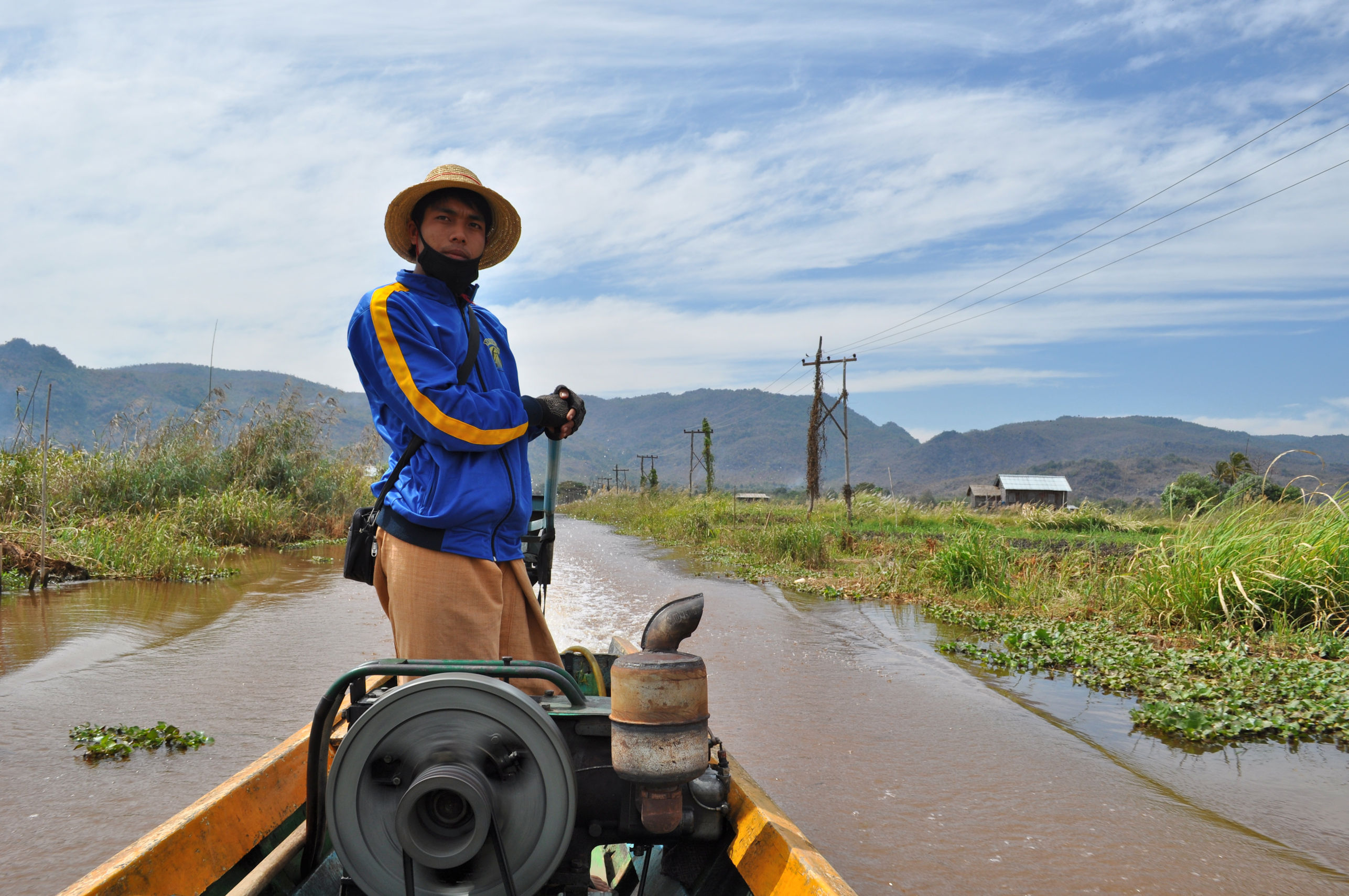 At long last, but also too soon, our trek was over and we had to say goodbye to Hein and our cook, who traveled with us the entire way. They handed us over to a boat man on the shores of Inle Lake. We had left our heaviest luggage with A1 the day we left, and only carried what we would need for three days. Our luggage was on the boat when we arrived. We climbed into a long, narrow boat and I spoke up and asked that Fumi sit in front. He is an artist with his photography; making more of the sights with his camera than any of us could. I wanted him to have an unmarred view because he had promised to share photos later.