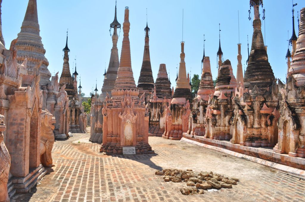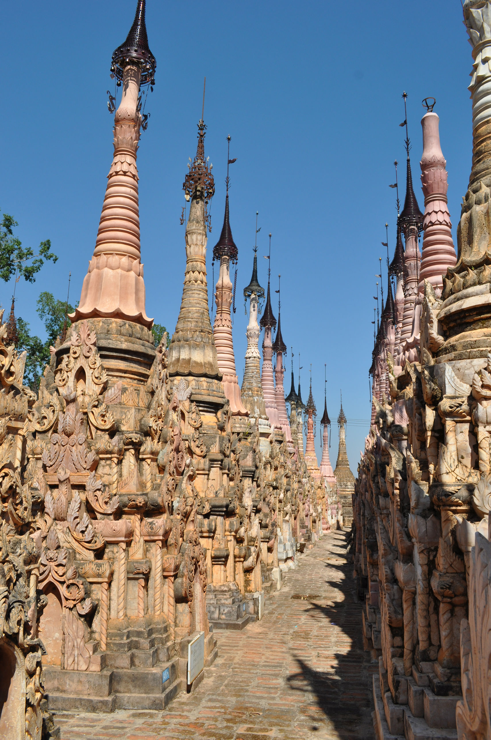 I had to look up the word. “Stupa” simply means heap, or pile. The word in this case refers to a small pagoda built over a relic. At Kakku there are 2,478 stupas together. The Internet site we referenced to find this place says, “some are simple and unadorned while others are covered in a riot of stucco deities and mythical beasts.” It’s a great description.