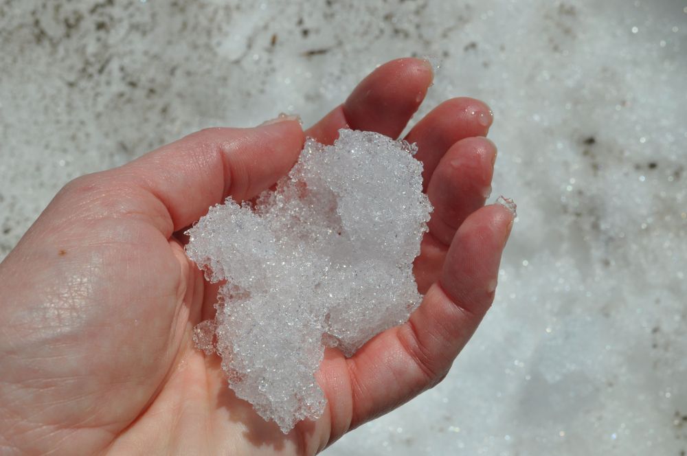 I was surprised at how busy the mountain is…but then I realized that June is early in the summer. That means, all the snow has not yet melted. Most schools are out and the kids are getting in a last few snowboarding runs before it’s too late. The chair lifts weren’t running, so skiers hauled all their gear up the mountain on foot!