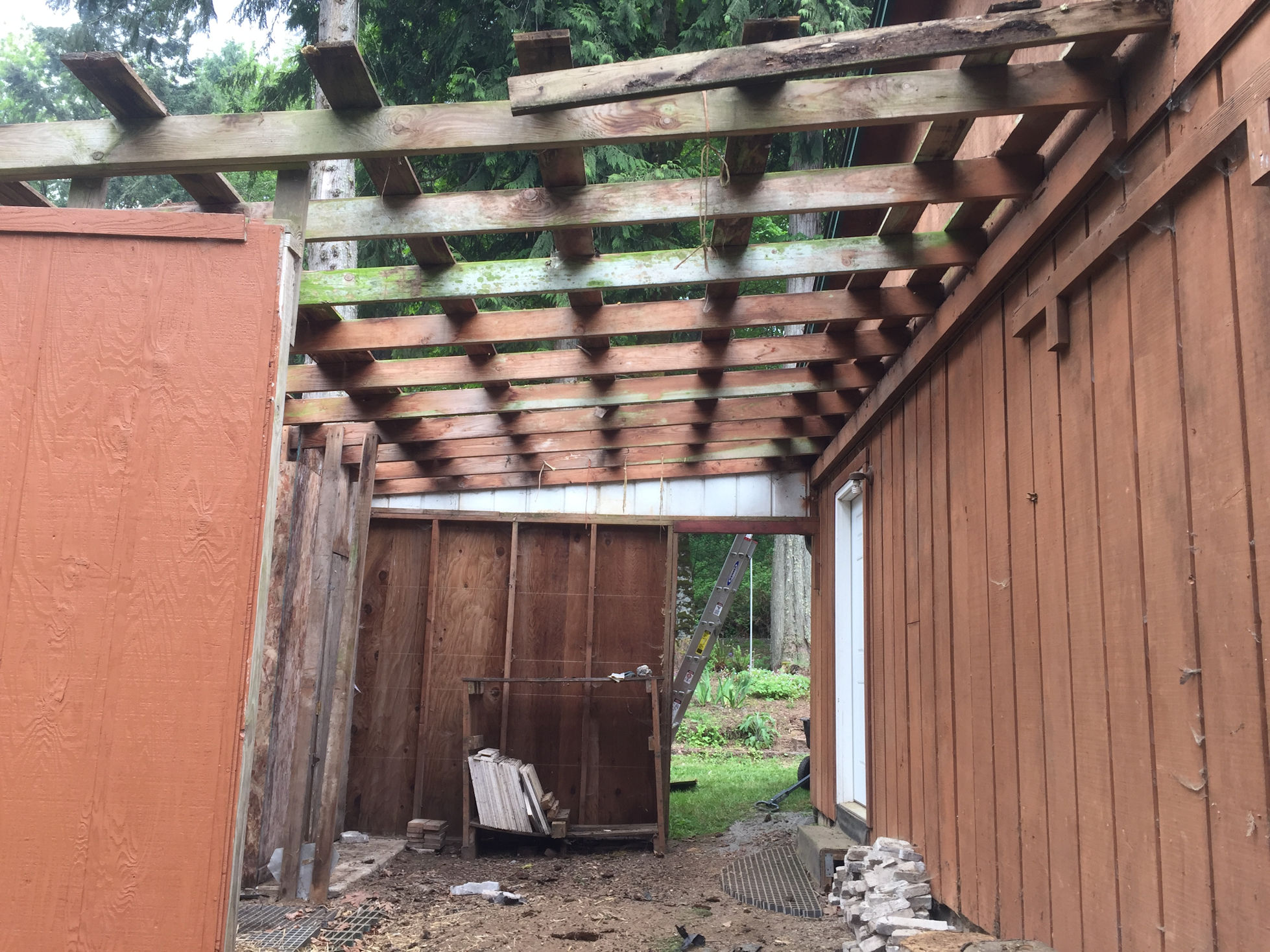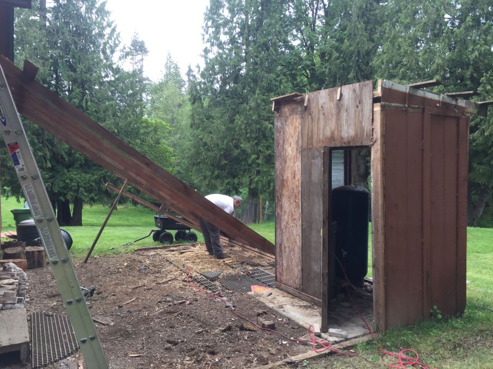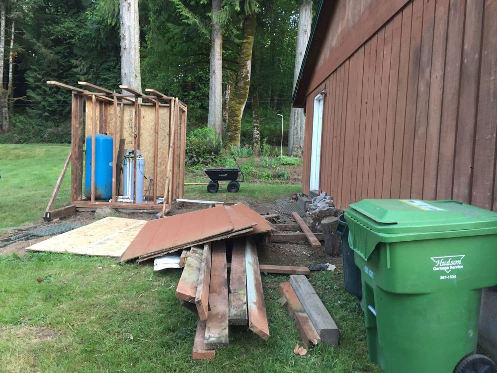 One problem was that the shed also contained my well. So the tear down had to be careful, and there also had to be a plan for a reconstructed pumphouse, to continue to protect the well.