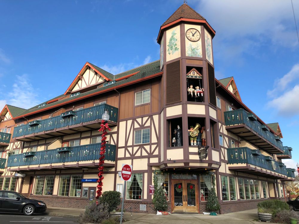 By this time we had worked up an appetite and were thinking about the Glockenspiel again, but on our way back to the Jeep we passed the Mt. Angel Sausage Company. Santa was out front, waving to people on the street. It was a sign, and I told Marlene that’s where I wanted to eat lunch. She was on board. I had a bratwurst with onions and sauerkraut, and marlene had sausage in a sandwich with a pretzel bun. Yum! I chose a beer to go with lunch and it came in a pint bottle so I couldn’t finish it – so sad to leave beer on the table.