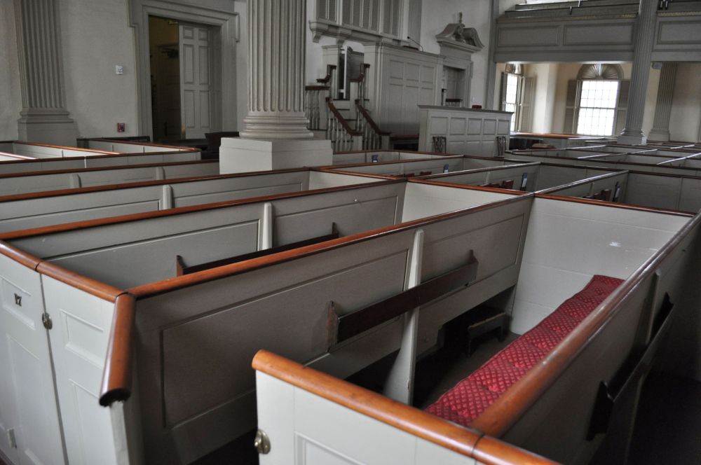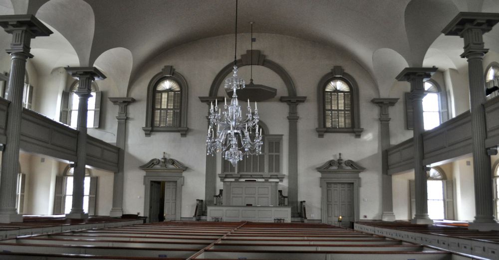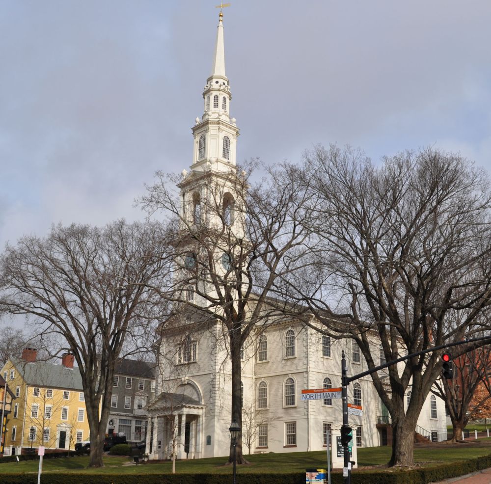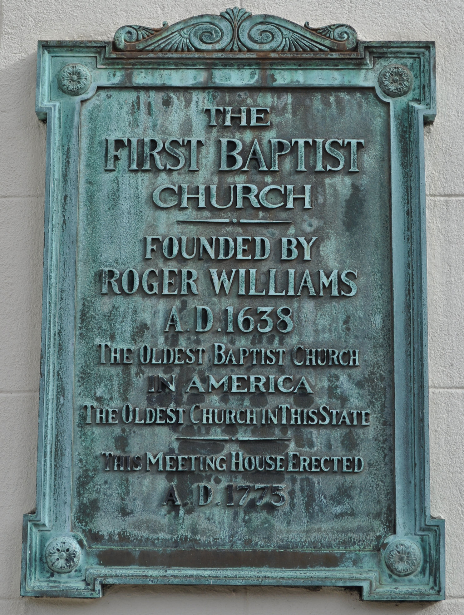 The church was founded by Roger Williams in 1638. The present building was erected in 1774-5. Roger Williams was a Puritan who left England to escape religious and political persecution. He did not come to America in the first wave however, but a few years later in 1631, and brought non-conformist ideas of what the colonies should be all about. Williams was adamant about separation of church and state, and insisted that the local church totally repudiate its ties with the Church of England. He also declared it a “solemn public lie” that the King of England had the right to grant land to colonizers without first buying it from the Indians. The ideas challenged the legality of land uses at that time and stirred up political and religious unrest, and threatened to upset the fragile economy. All this had been set up before Williams even got there, and his loudly proclaimed contrary ideas were a major disruption.