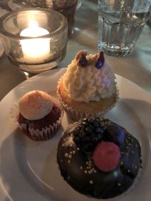 We walked back to the Biltmore to get the car and went off to have many many cupcakes at Duck & Bunny. This restaurant calls itself “a snuggery,” which their website insists is a word. It is delightful inside, and the tables are scattered throughout the rooms of the former house. We sat next to the fireplace, that was filled with burning candles instead of of logs.