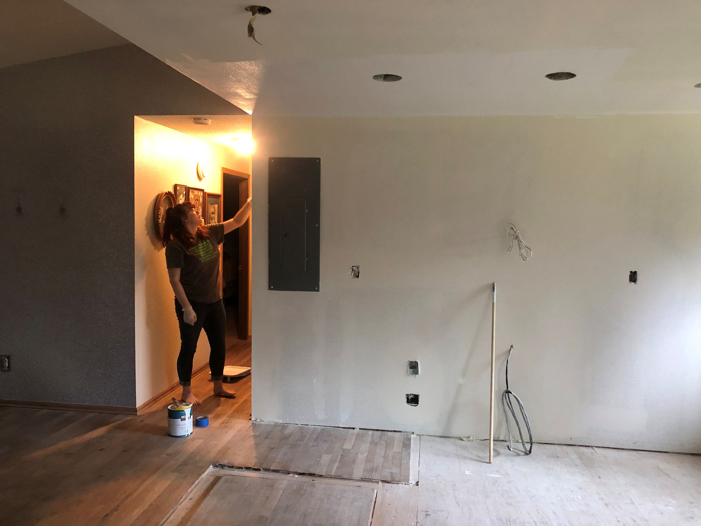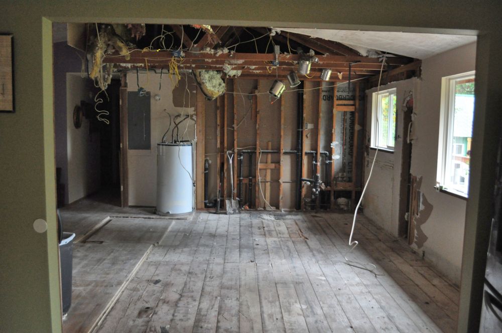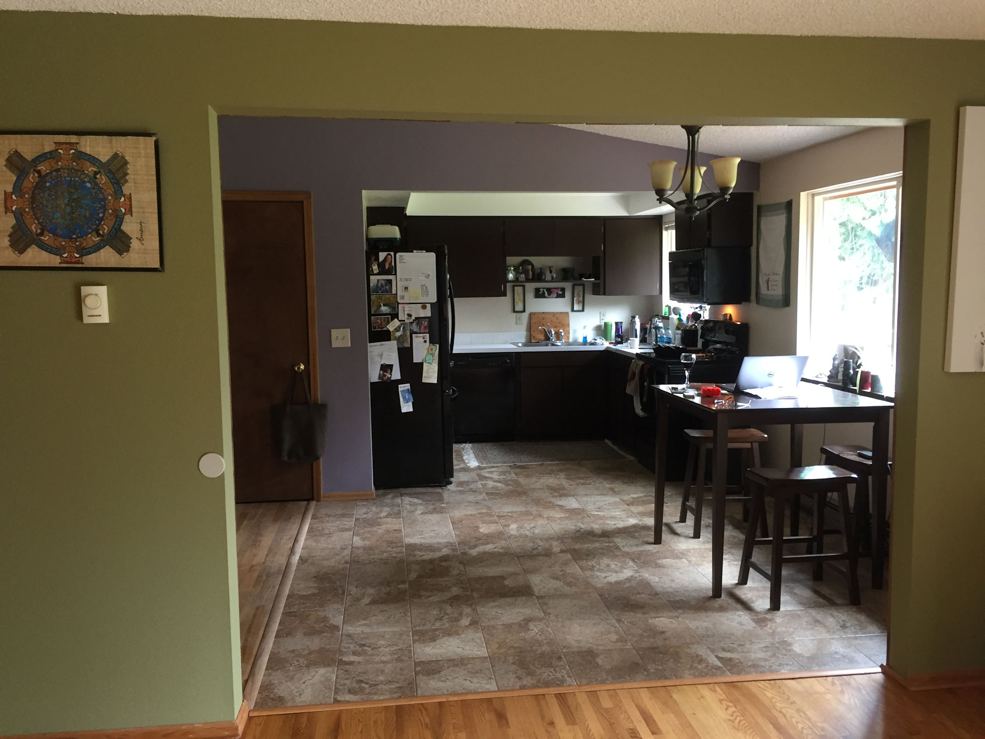 Prior to the remodel, I was lucky to have friends remind me to take before and after pictures. I knew the change would be drastic, so I needed a point of reference. I chose to stand in the TV room and look through the open walkway into the kitchen.