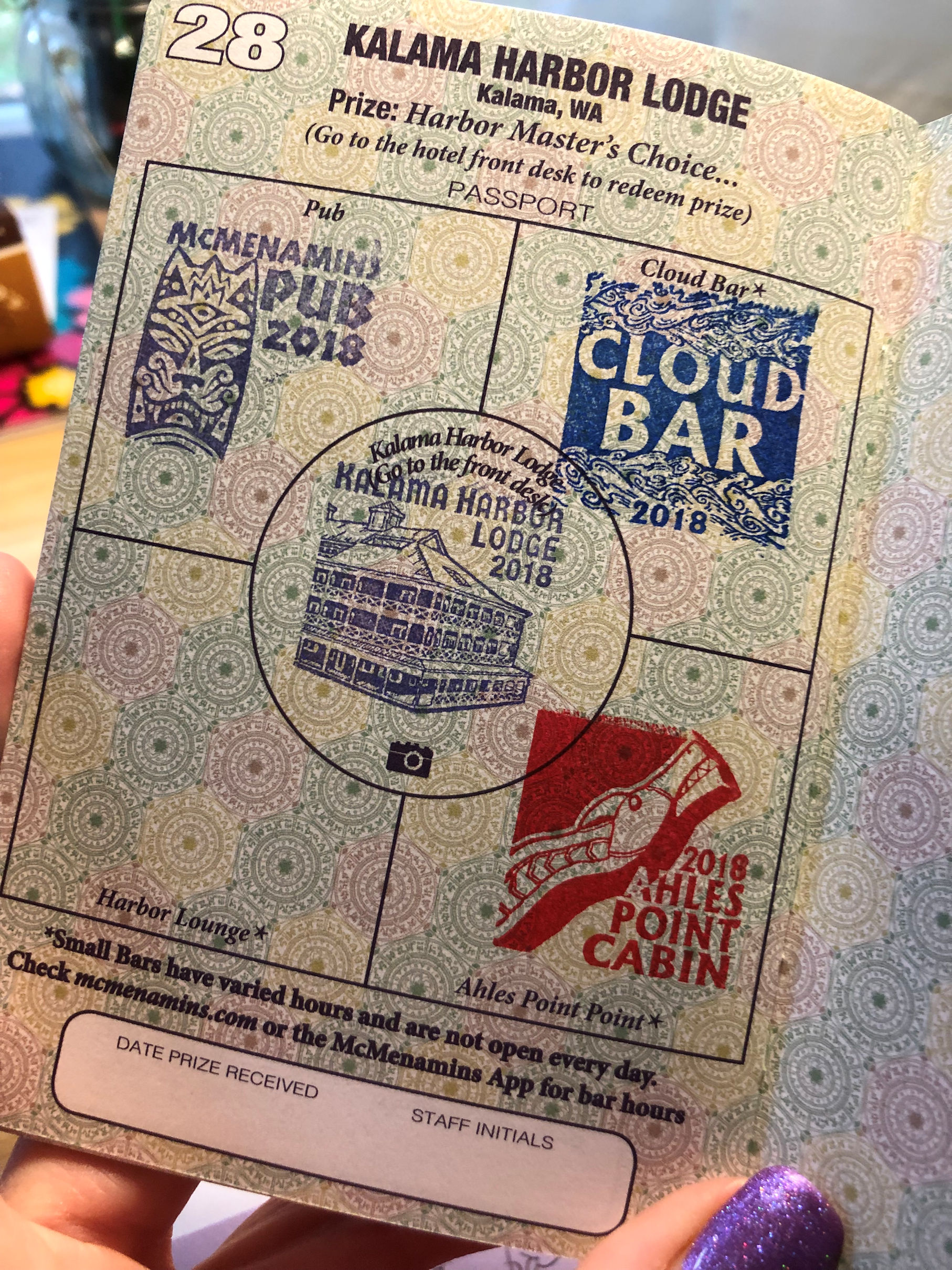 Stamps for Kalama Harbor Lodge. Only one more stamp to go!