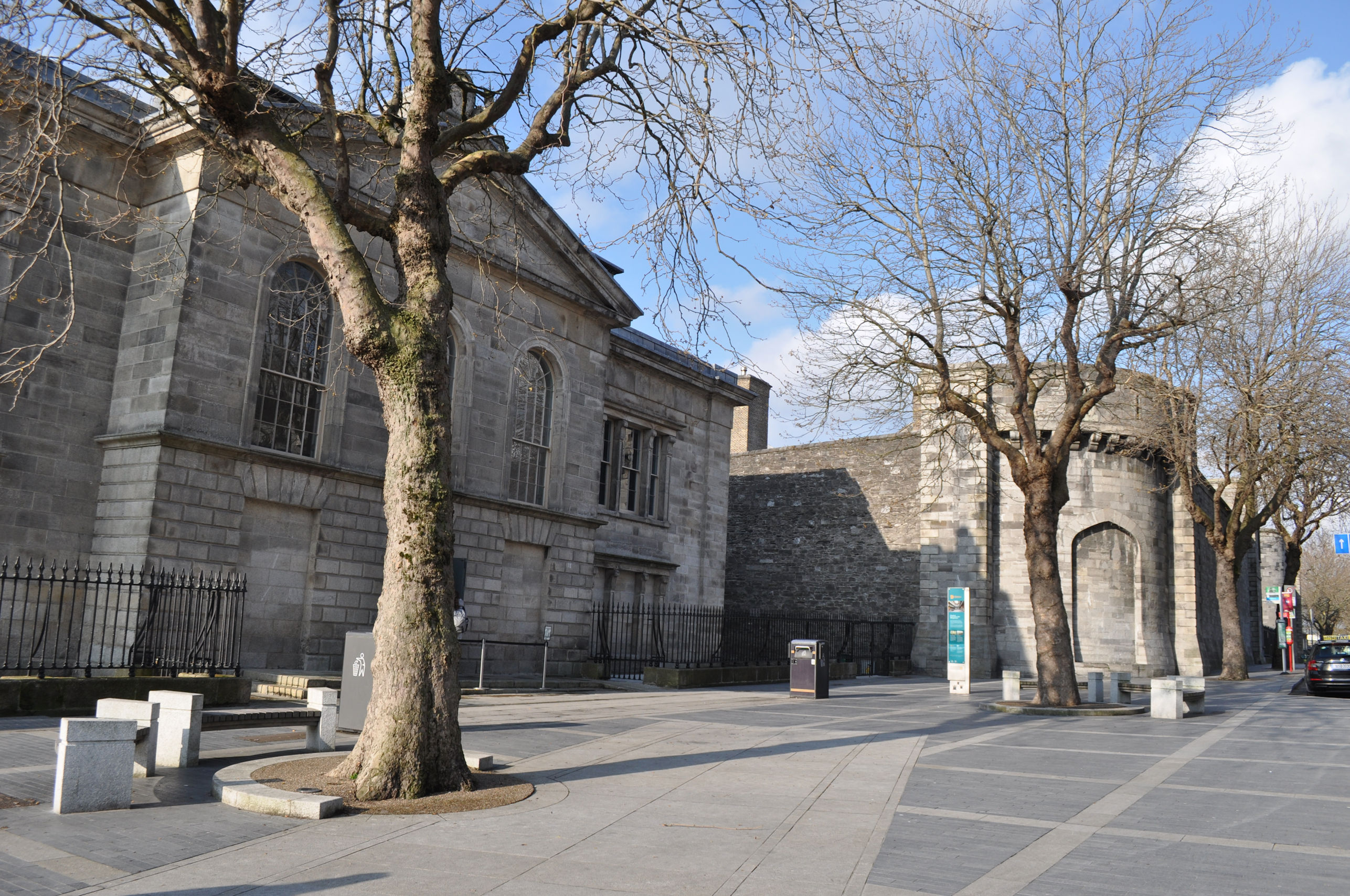 Tara and I got up early and caught a city bus to the other side of downtown Dublin. On our second day Tara was feeling better so we could explore together, unlike yesterday. Our first brave thing on this trip had been taking the express bus from the airport and finding our way to the apartment without copping out and hiring a taxi. Our second brave thing was to take the city bus from the apartment to Kilmainham Gaol. We found out the bus we needed, and the stop, by using Google maps. But we didn’t know the fare. While we waited for our bus, we saw fares posted on the outside of a different bus, with a note to use exact change, which we didn’t have! So we hustled back to the main street, found a convenience store and asked for change for the bus, which the shopkeeper graciously complied with, no questions asked. Then we ran back to the bus stop just as our bus was arriving, and hopped on. We used the map on my phone to track our progress and hit the button to stop when we got close. As we thanked the driver, he pointed the direction we should walk for Kilmainham Gaol, and viola! We arrived on time, produced our tickets, and were ushered directly inside.