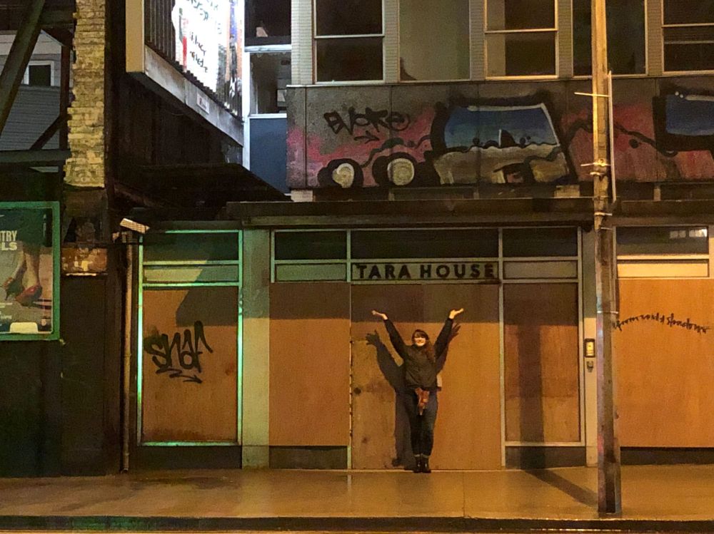 What a delightful day. Glad to hear Tara is feeling better. The painting at the Goal is packed full of emotion. I enlarged the photo and stared at it for a long time. I am in awe of the detail put into the architecture too. The visible support “brackets” for the second tier is beautiful. Perhaps not for prison but certainly for a museum. I wondered how cold it was there for you. Now I know. Thanks for freezing your fingers in order to provide such lovely photos for us to enjoy! Especially, Tara posing in front of Tara House on Tara Street. Loved it!