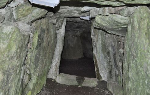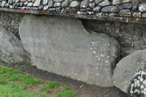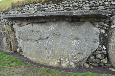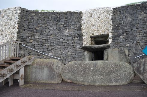 We were not allowed to access the site without supervision, and not allowed to enter without a guide. This was fine with us, because the guide told us more about the site and helped us appreciate it while we were there. We were not allowed to photograph the inside. We entered by the main entrance pictured above with white and grey stone around wooden stairs, and walked through a very narrow passageway into a central room. The guide turned out all the lights so that it was pitch black, then lit another light to simulate sunlight streaming through into the room as it would during 17 days of solstice in December. This would have given hope to the people at that time that days were getting longer, and Spring was coming again.