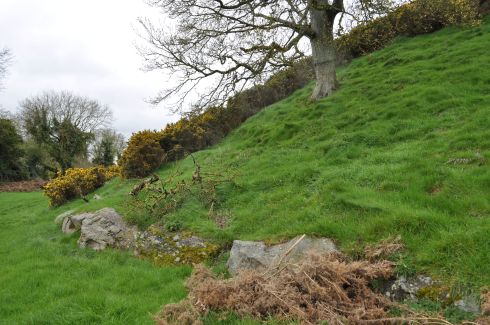 Next we went to nearby Dowth, part of the same historical complex. Dowth is unexcavated, and for that reason I found it particularly appealing. No modern human has attempted to put his own interpretation onto the outside of the site, as was done at Newgrange. There is a hill over two entrances, and the tops of the outside circular stones showing.