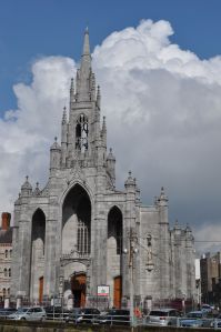 We headed for St. Finn Barre’s Cathedral, completed in 1879. However, it was too late in the day to admit the public, and the gates were locked. So we circled the enormous gorgeous cathedral, glittering in the setting sun, and took sunset photos through the gates. Then we tried to find the oldest pub in Cork but were never sure which one it was so we settled on Forde’s Bar. A man there chatted us up and told us he had lived in Massachusetts for 20 years, which was fun because we also have lived in Massachusetts. The man left, but when I paid our bill, I paid for a couple of pints for that gentlemen whenever he returned. We had a Beamish stout, which apparently is what you drink when you’re in Cork, rather than Guinness. We had only been in Cork a few hours, but already we had detected a sharp criticism of Dublin. Rejection of Guinness was part of that criticism. More graffiti echoed the sentiment.