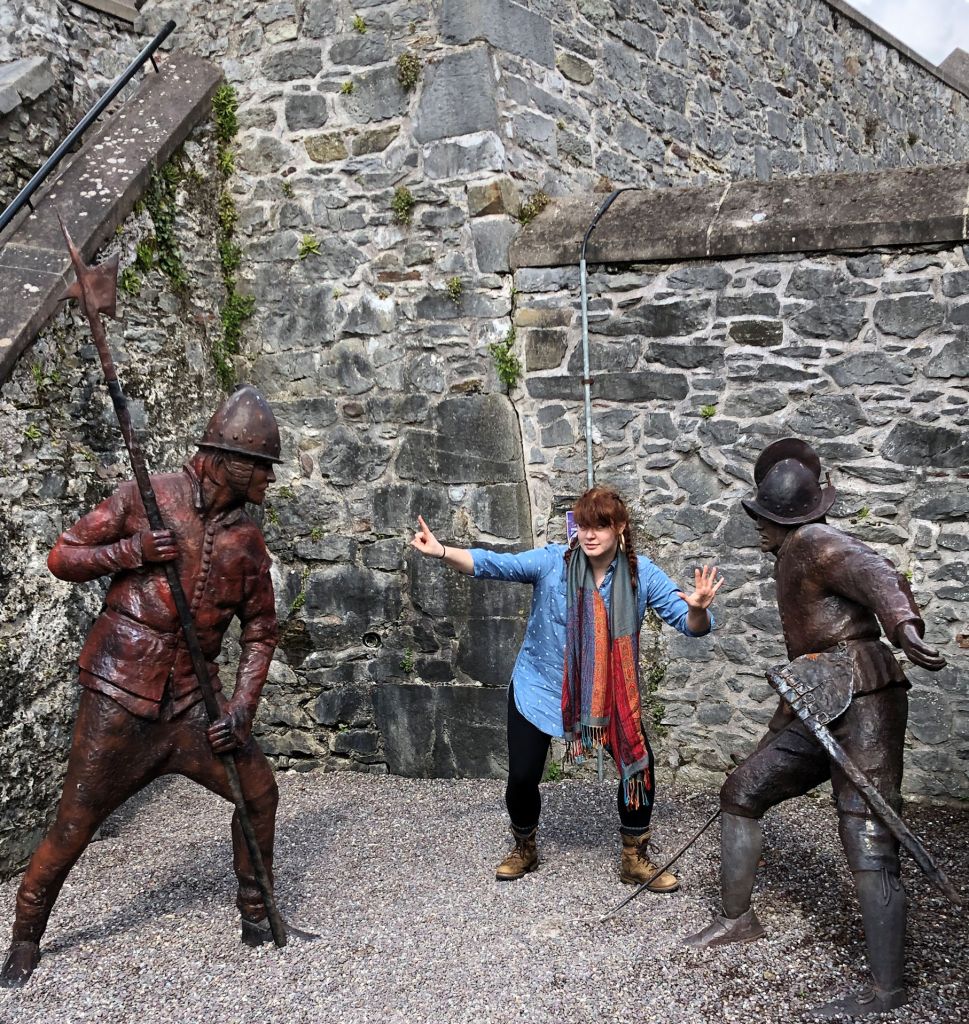 After checking in to the hotel, we headed directly back the way we had come, since the city along the river is so inviting. We stopped at a National Monument from 1906 with an inscription on it that says: “To perpetuate the memory of the gallant men of 1798, 1803, ’48, and ’67, who fought and died in the Wars Of Ireland to recover her sovereign independence and to inspire the youth of our country to follow in their patriotic footsteps and imitate their heroic example and righteous men will make our land A NATION ONCE AGAIN.” Prior to the trip I had been studying the key points of Irish history. I had noted a couple of battles and events that seemed relevant – all being the same to me. But arriving here, I find this history is still alive. Every single tour guide tells the stories, and every common person at some point refers to England, and Cromwell, and Bloody Sunday if you talk to them long enough. Every monument you look at tells the stories once again. In the Cahir Castle (we went there several days later) there was a whole room dedicated to biographies of the 14 men who were killed after the 1916 Easter Uprising. I have a much better sense of the feelings behind the ache for Irish independence and the complications that have prevented it.