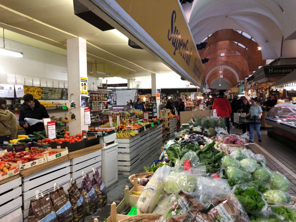 We walked into what was the original Cork city, then we found the park with the wall, and went to see it. Elizabeth Market was across the street from there, so we next went to the big market. I bought snap peas and Tara bought a pomegranate, and we finally headed back to the hotel in hopes that they would now have a room for us to check into.