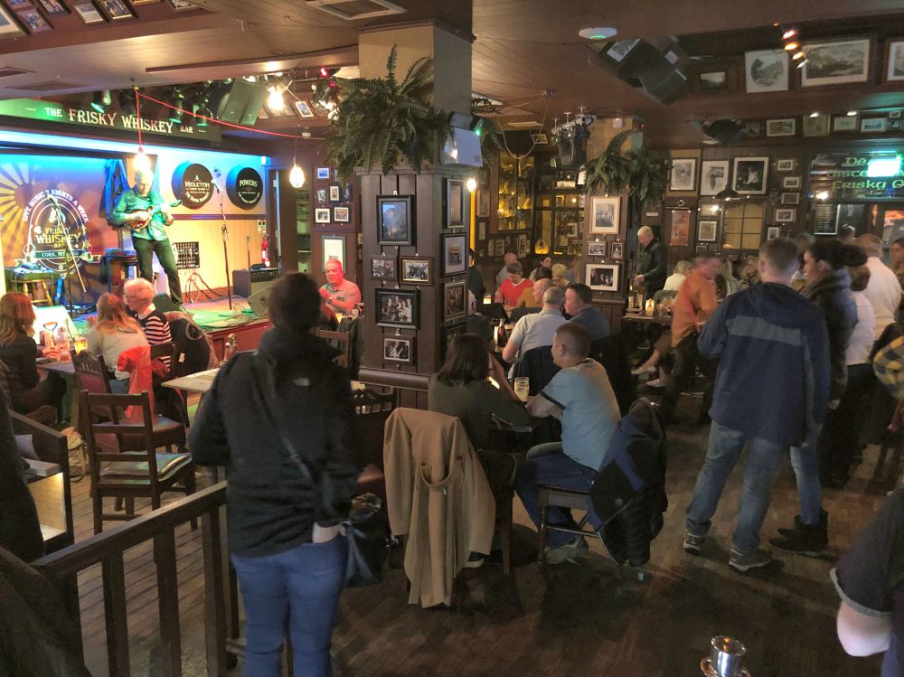 We walked once more down Oliver Plunkett Street and found ourselves in front of Frisky Whiskey, that Steven had mentioned. So we went on up to the second floor where there was live music. We drank Teeling, a new Irish whiskey we had just heard of, and enjoyed the music till we were tired enough to sleep.