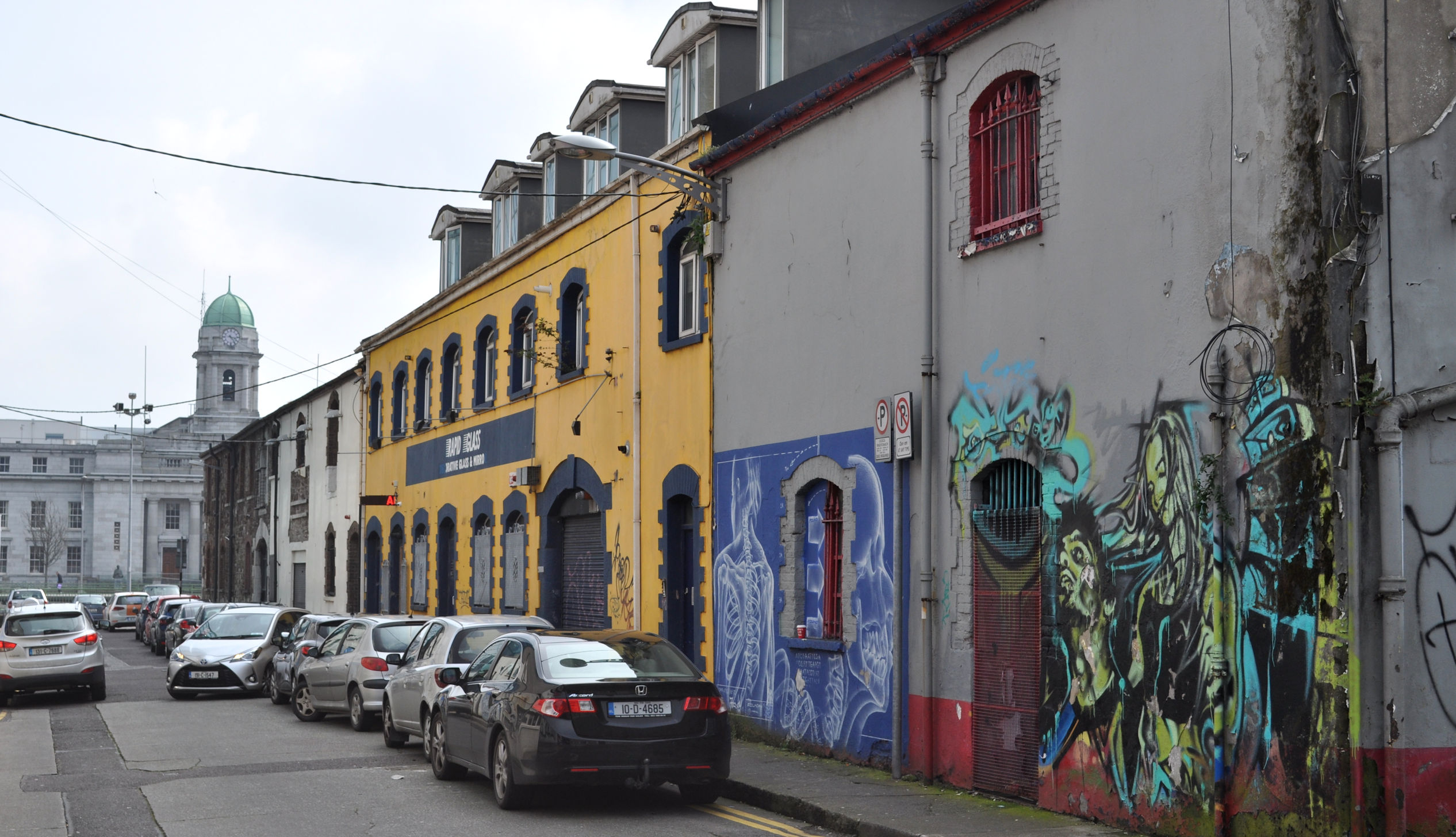 We headed for St. Finn Barre’s Cathedral, completed in 1879. However, it was too late in the day to admit the public, and the gates were locked. So we circled the enormous gorgeous cathedral, glittering in the setting sun, and took sunset photos through the gates. Then we tried to find the oldest pub in Cork but were never sure which one it was so we settled on Forde’s Bar. A man there chatted us up and told us he had lived in Massachusetts for 20 years, which was fun because we also have lived in Massachusetts. The man left, but when I paid our bill, I paid for a couple of pints for that gentlemen whenever he returned. We had a Beamish stout, which apparently is what you drink when you’re in Cork, rather than Guinness. We had only been in Cork a few hours, but already we had detected a sharp criticism of Dublin. Rejection of Guinness was part of that criticism. More graffiti echoed the sentiment.