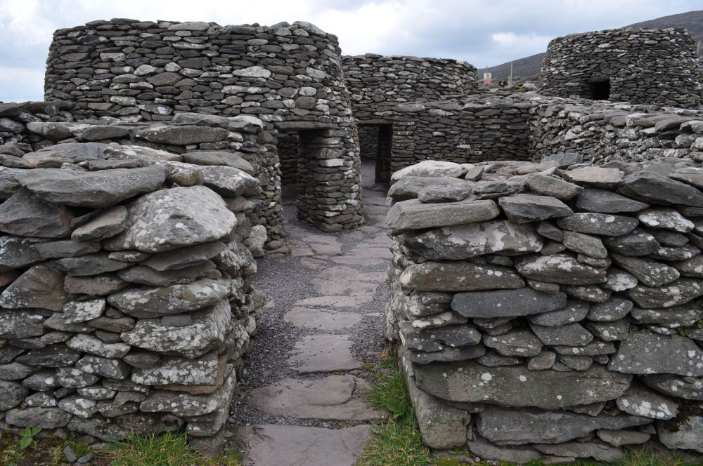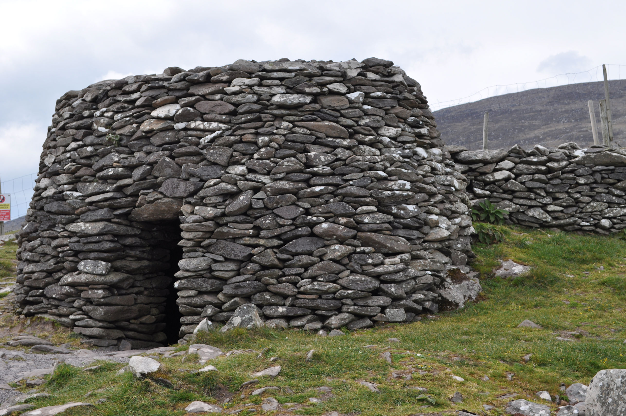 My plans were interrupted once again. This time by beehive huts. There had been several signs advertising beehive huts to tourists, and I don’t know one from another, so I can’t say if any are legit any more than another. From Wikipedia: “A clochán, or beehive hut, is a dry-stone hut with a corbelled roof, commonly associated with the south-western Irish seaboard. The precise construction date of most of these structures is unknown with any degree of certainty.” The beehive huts have been constructed since neolithic times, but as recently as the 1950s. That’s why it’s hard to pinpoint an age for a specific site. We had seen evidence of corbelling in Newgrange on our third day in Ireland. That’s when stones are overlapped closer and closer to the center, until a capstone can be placed on top for a ceiling.