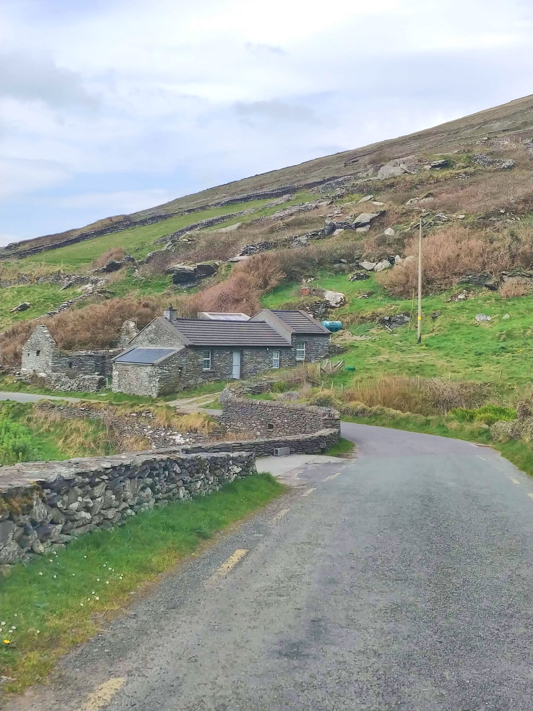 I haven’t mentioned the road, but on my second day driving in Ireland, today’s driving was a serious challenge and I passed the test! Much of Slea Head Drive is a single lane despite being a two way road. The speed limit was frequently higher than I was comfortable driving. It’s curvy, with a drop off into the sea, or possibly bound between a rock cliff and a rock wall with just enough space to get our little car through. If any traffic is oncoming, I had to quickly dart into someone’s driveway. Very stressful, but WHAT an adventure!