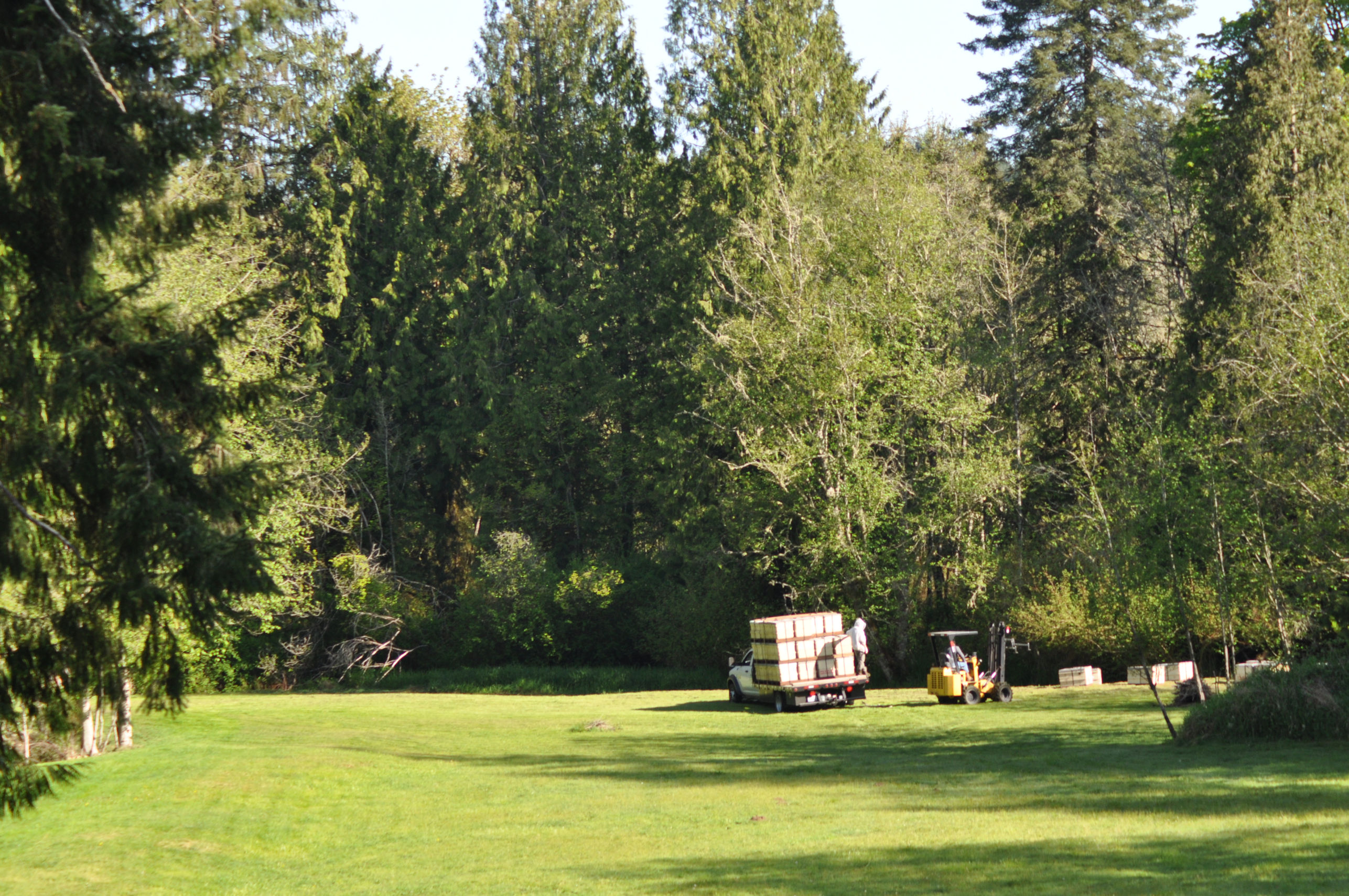 Just as I finished disposing of Tawny’s body, the bee people showed up. It’s time for bees again! I host them on my property every summer and fall, and get paid in honey.