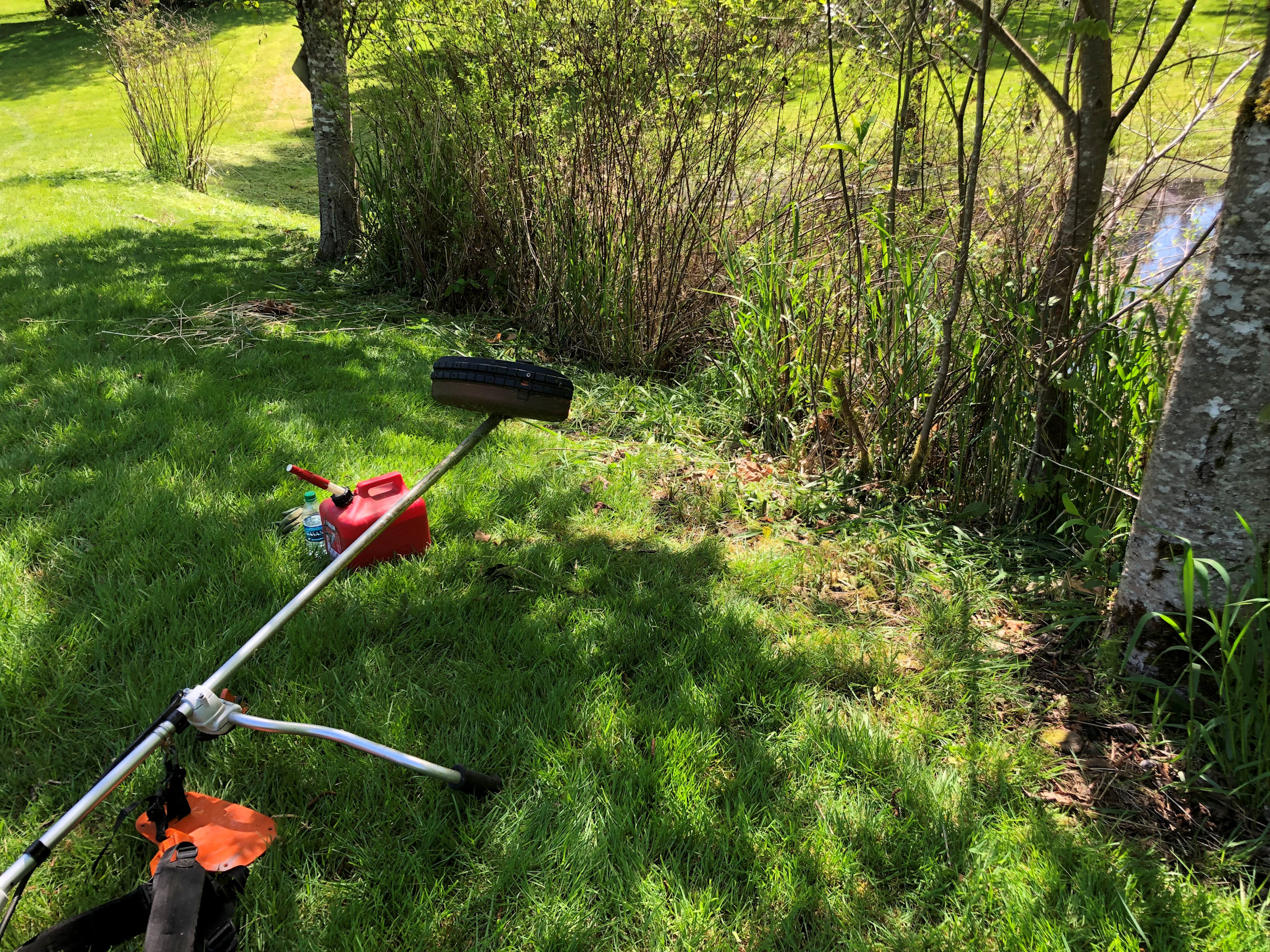 I took down the tall grass all the way around the pond, and around all the trees on the far side of the pond.