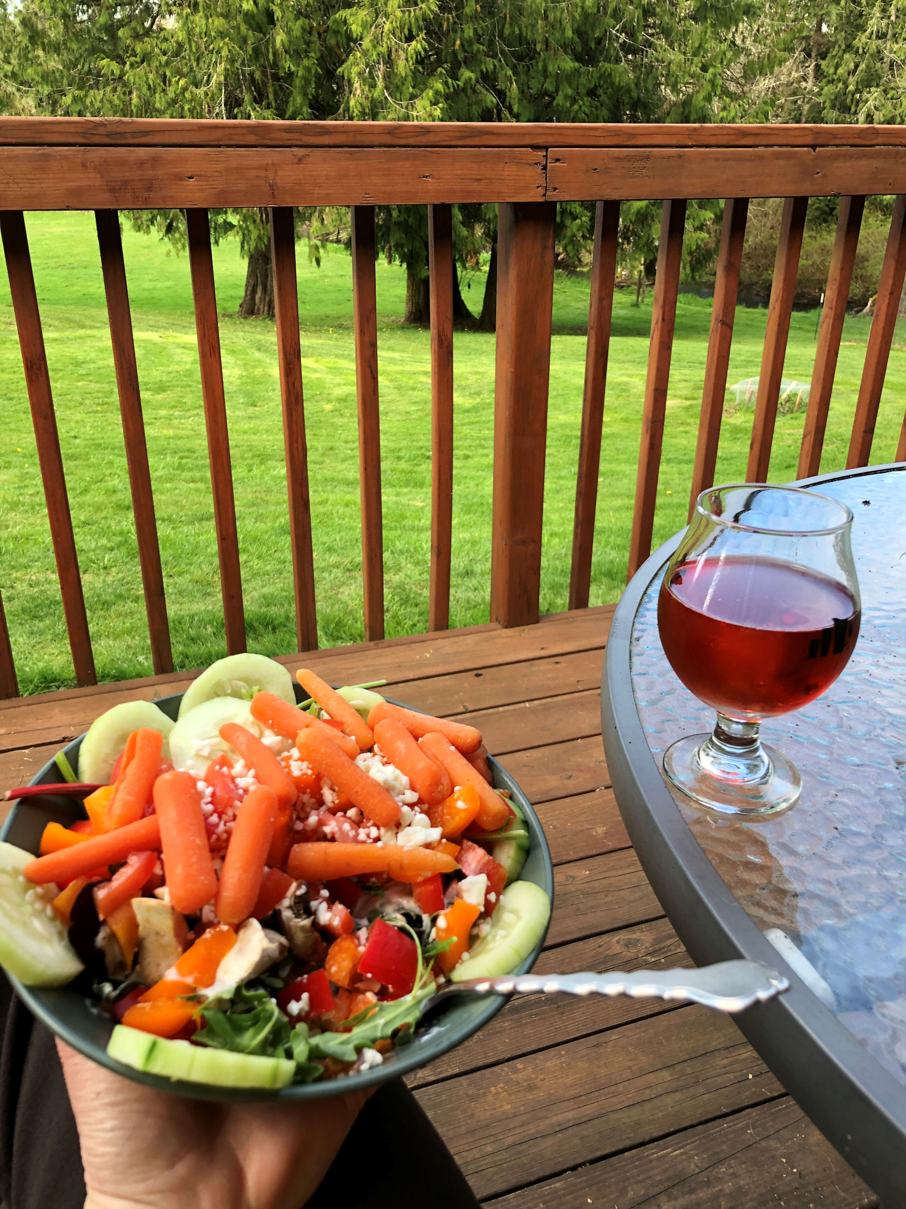 Enough for one day!! It was time for dinner and some pomegranate cider. I have to make my salads look amazing to trick myself into eating them, ha ha.