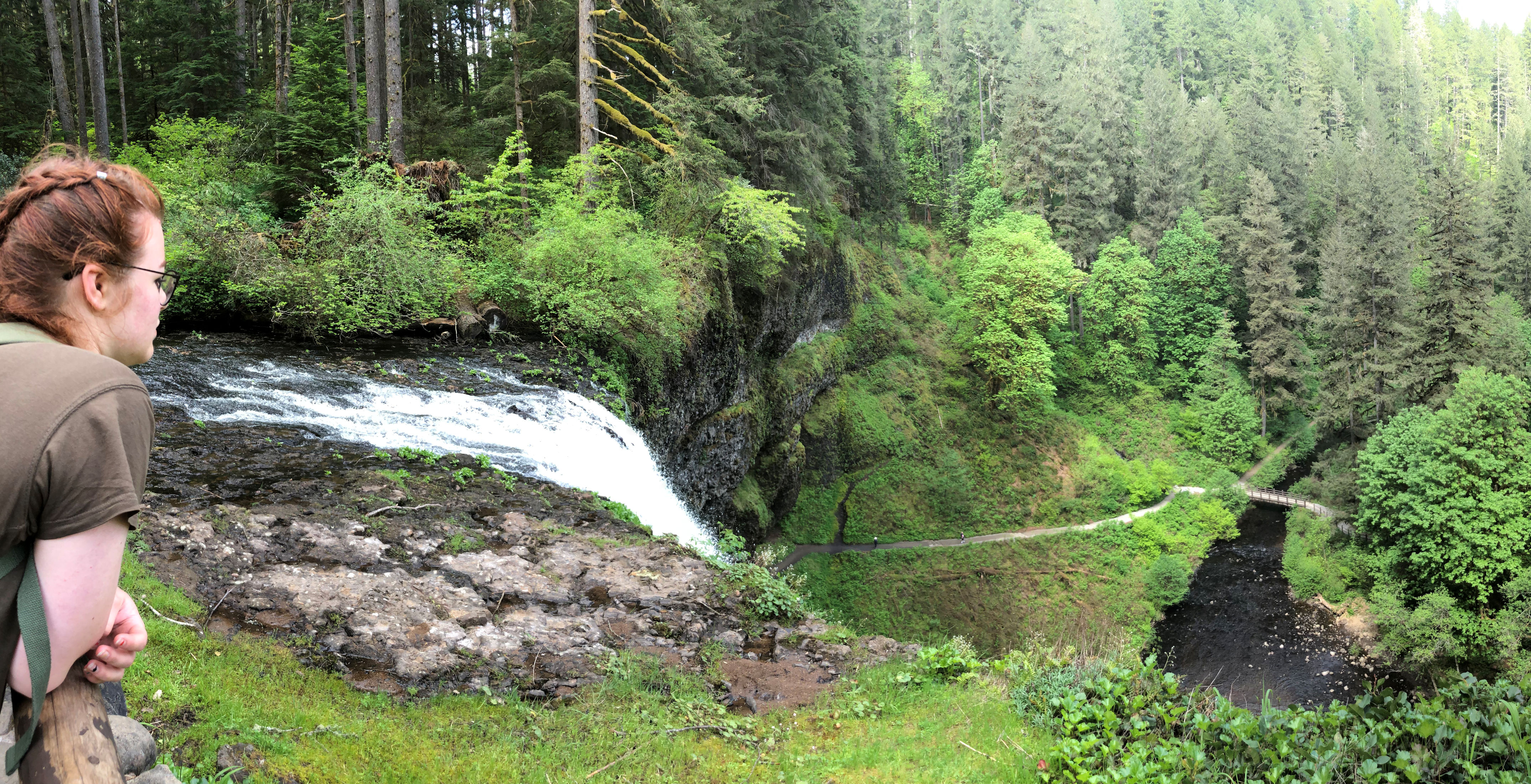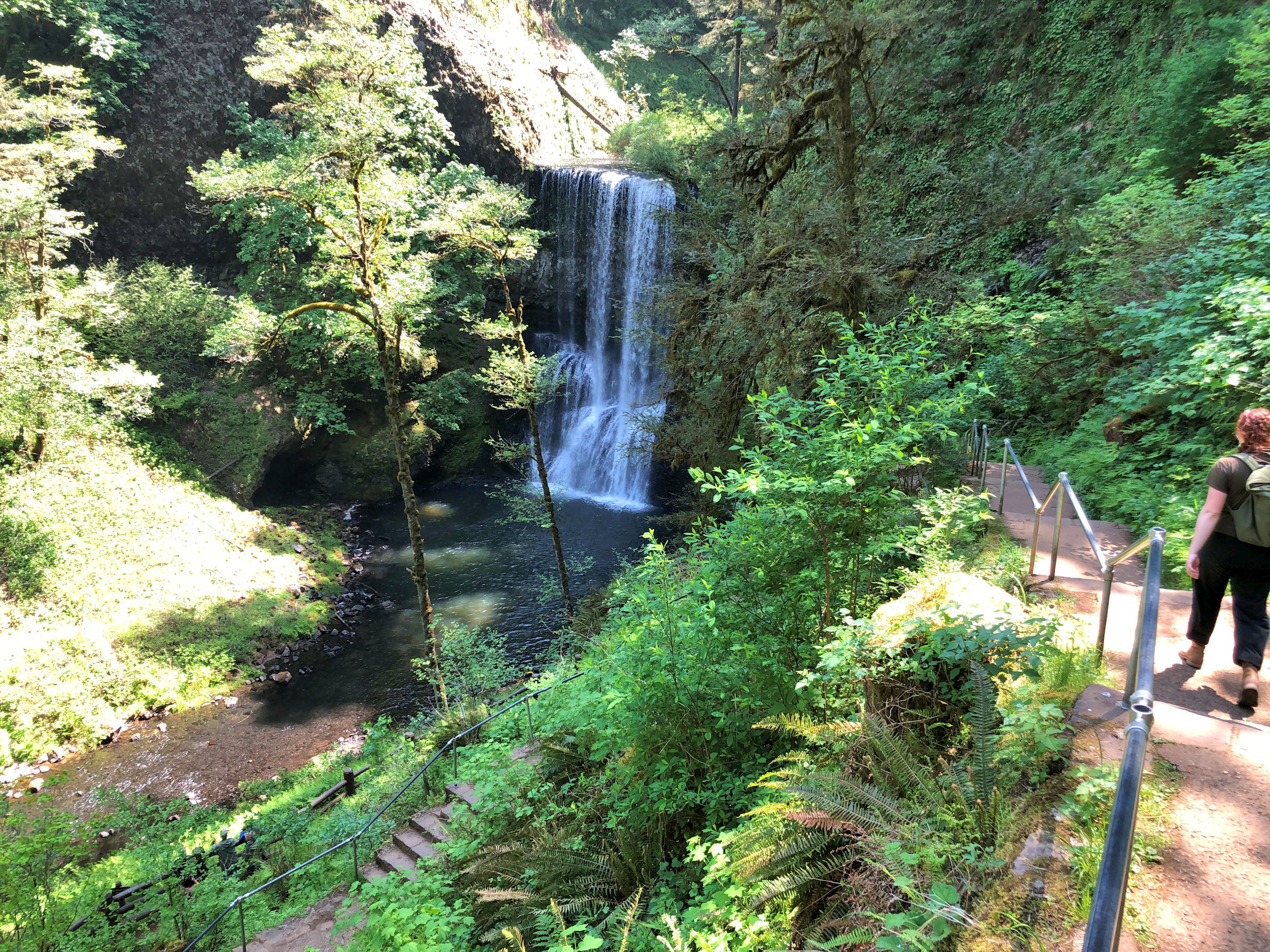 I had my geologist Tara along with me on this hike, which added a fun dimension. Tara pointed out lava rock when I wasn’t expecting it, and of course the ever-present basalt columns that make these astonishing waterfalls possible. Tara also talked about the common rock types in Oregon, because of the millennia of volcanic eruptions, and described their favourite rock type: schist. Tara likes schist because other kinds of rock come together to make a new rock, called schist. I asked if that’s what geologists yell as an exclamation. “Schist!” You’ve heard of Dad Jokes, well, I do Mom jokes.