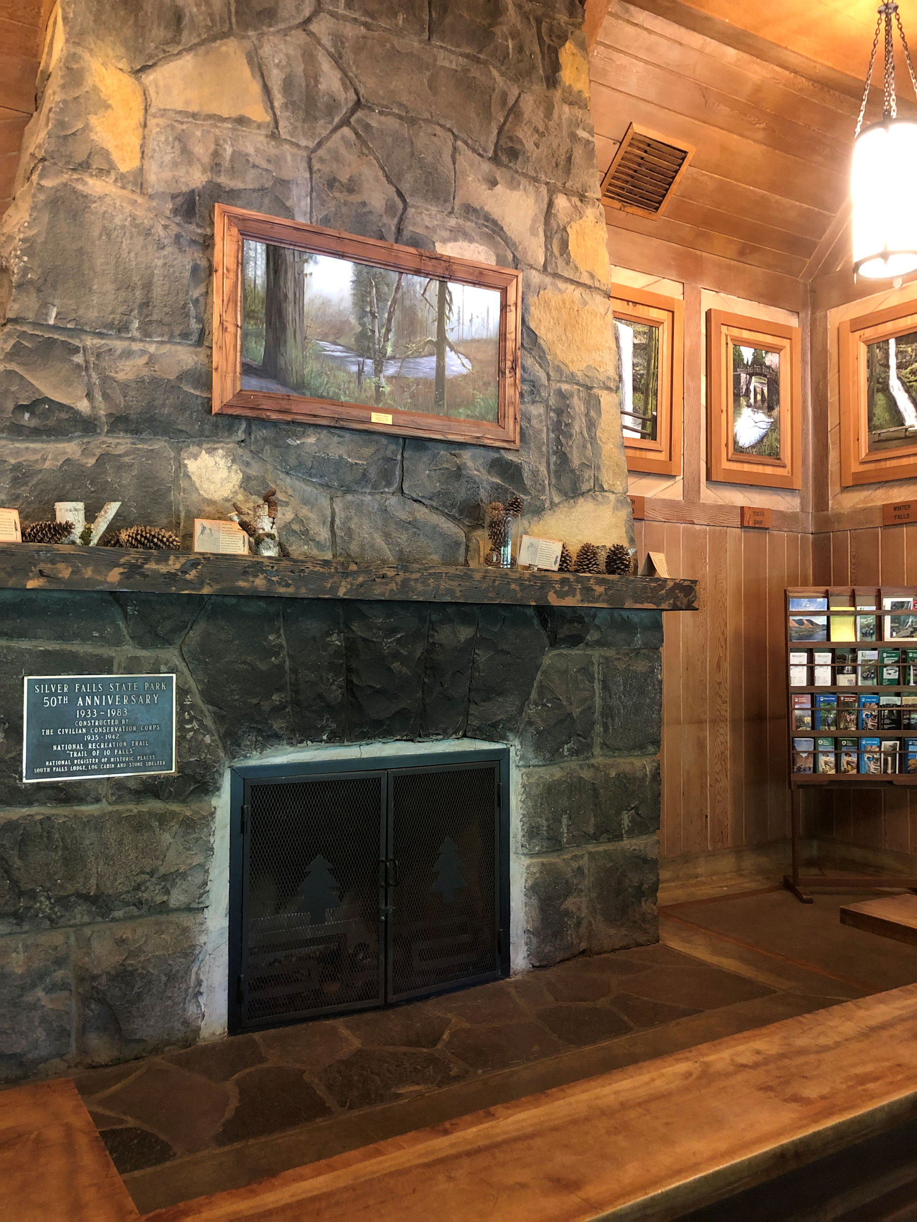 On the map I saw there was a café! I mean, this place, seriously. So we walked from the campground almost a mile to the place where the café was supposed to be, which was on the way to the falls anyway. There is an adjacent lodge that holds a restaurant and I would have been happy for either, to go indoors, get a hot coffee and thaw out. The sign on the door said “closed Mondays.”