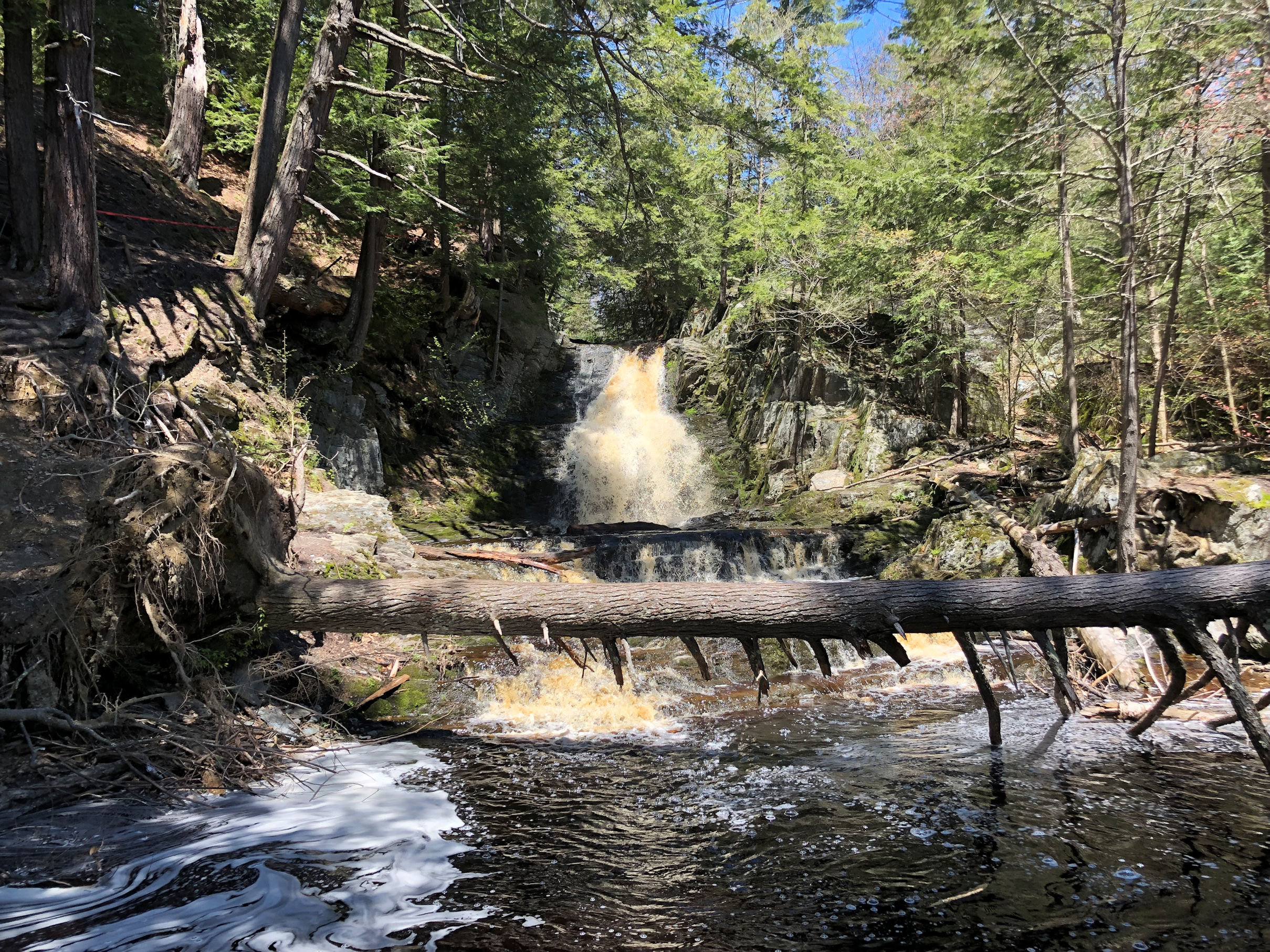 It looked like winter storms had brought some trees down recently, and the view of the falls was somewhat blocked, but it was still pretty. There was a dark copper colour to the water, and we talked a little about what might cause it. I recall streams and lakes this colour when I lived in Vermont and Massachusetts, so it must be something about the soil in New England that causes it.