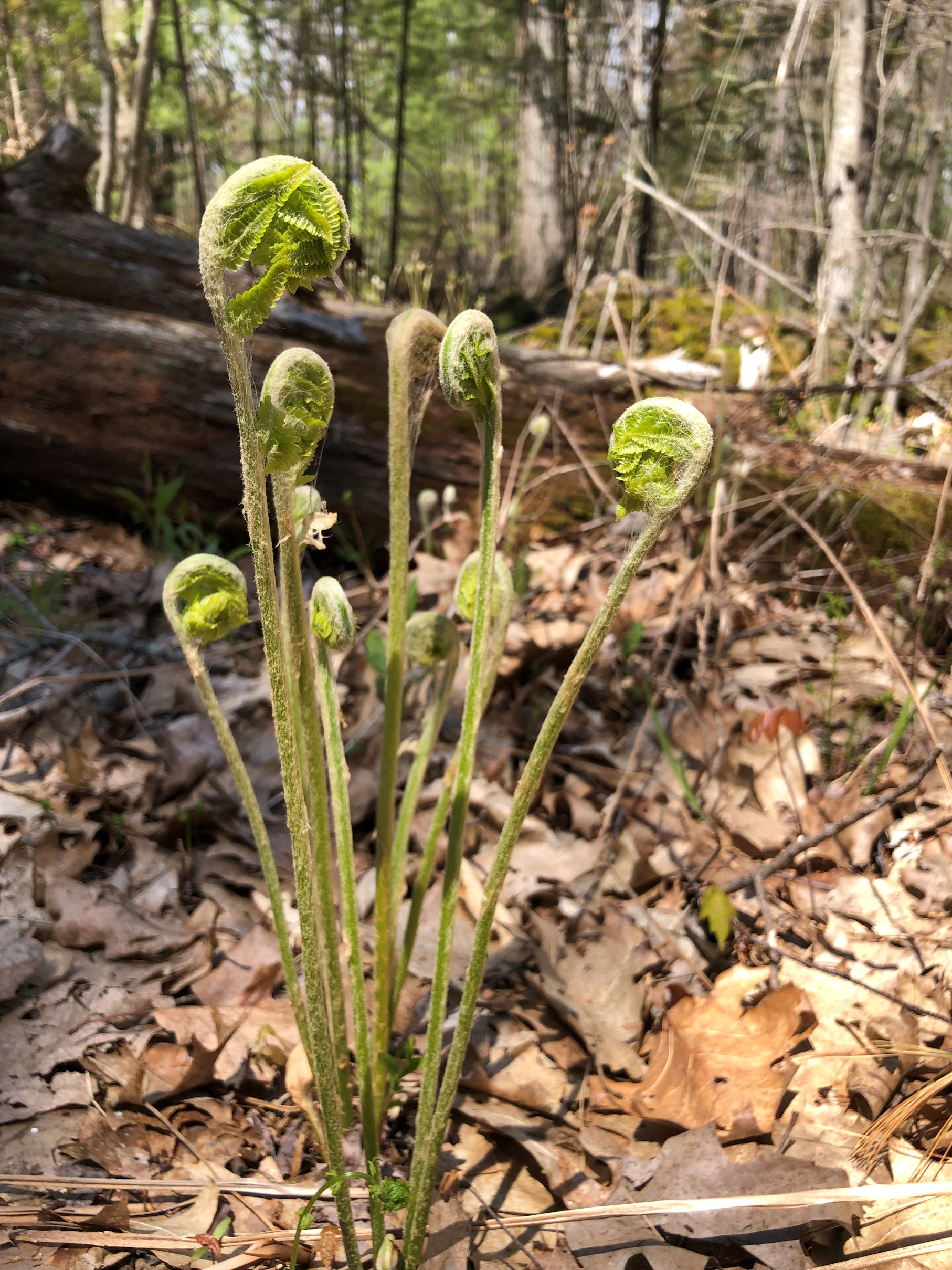 Fiddleheads? Weird names. To me they’re ferns. Veeeery old ferns. 60 million years or so?