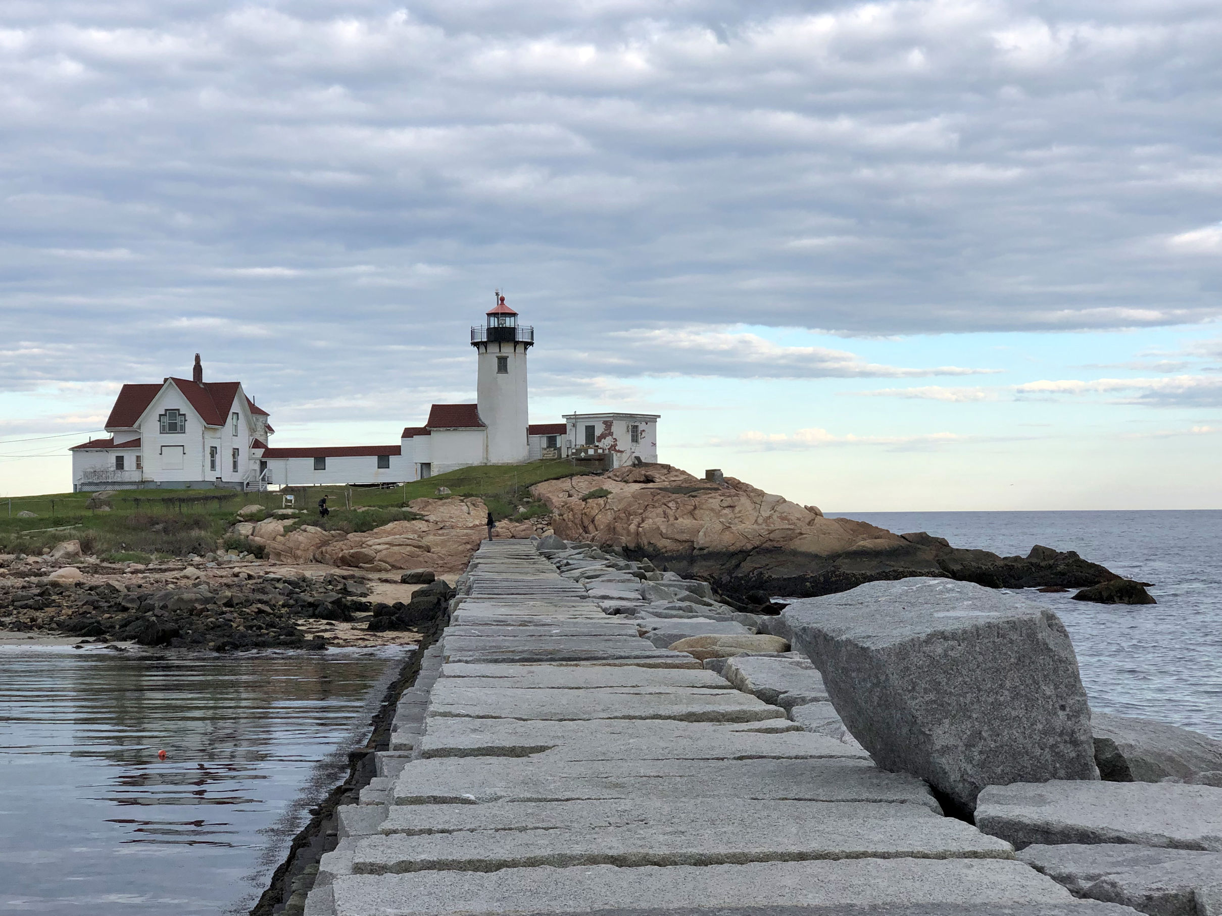 Looking back at Eastern Point Lighthouse from Dog Bar Breakwater.